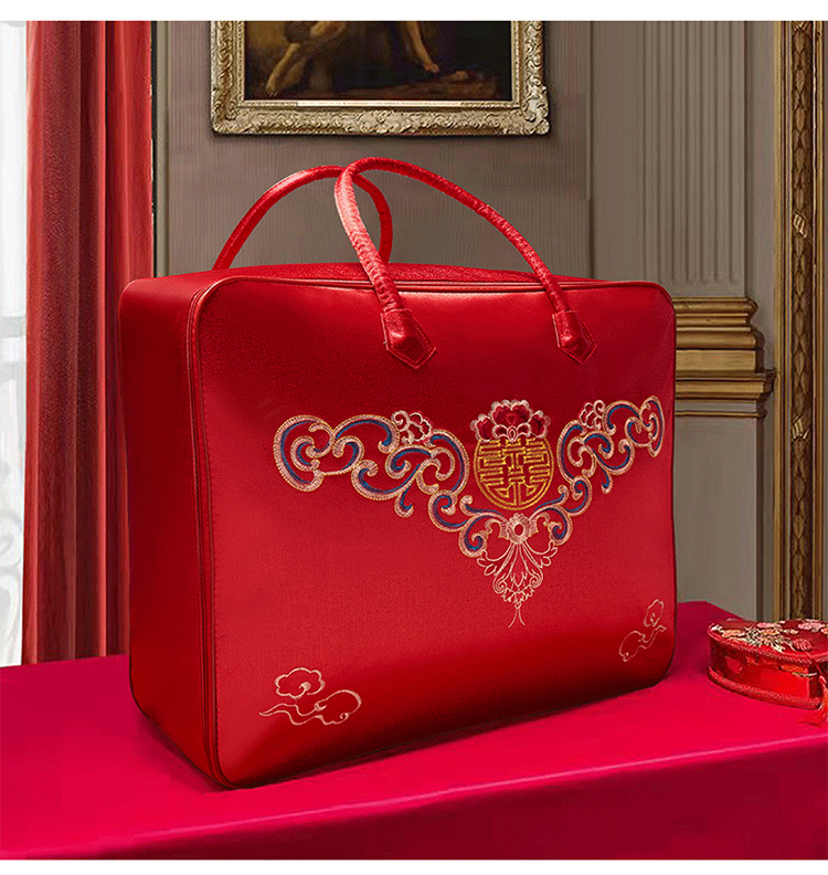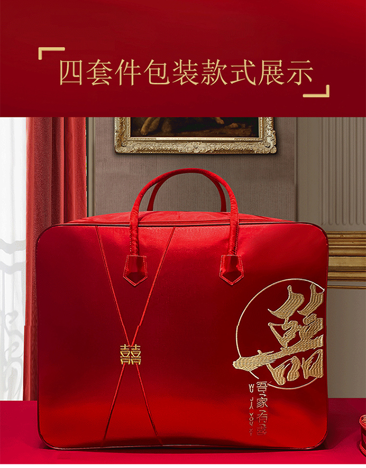 結婚付き添い収納袋結婚祝いの4点セット赤い喜布団入りの包装袋サテンオックスフォード手提げ