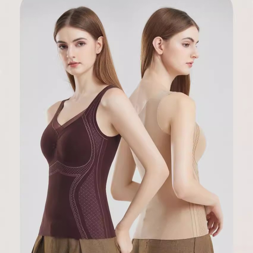 2024秋冬モデル両面磨毛保温ベストと胸パッド付きの一体保温下着は傷がなくてスリムで痩せています。