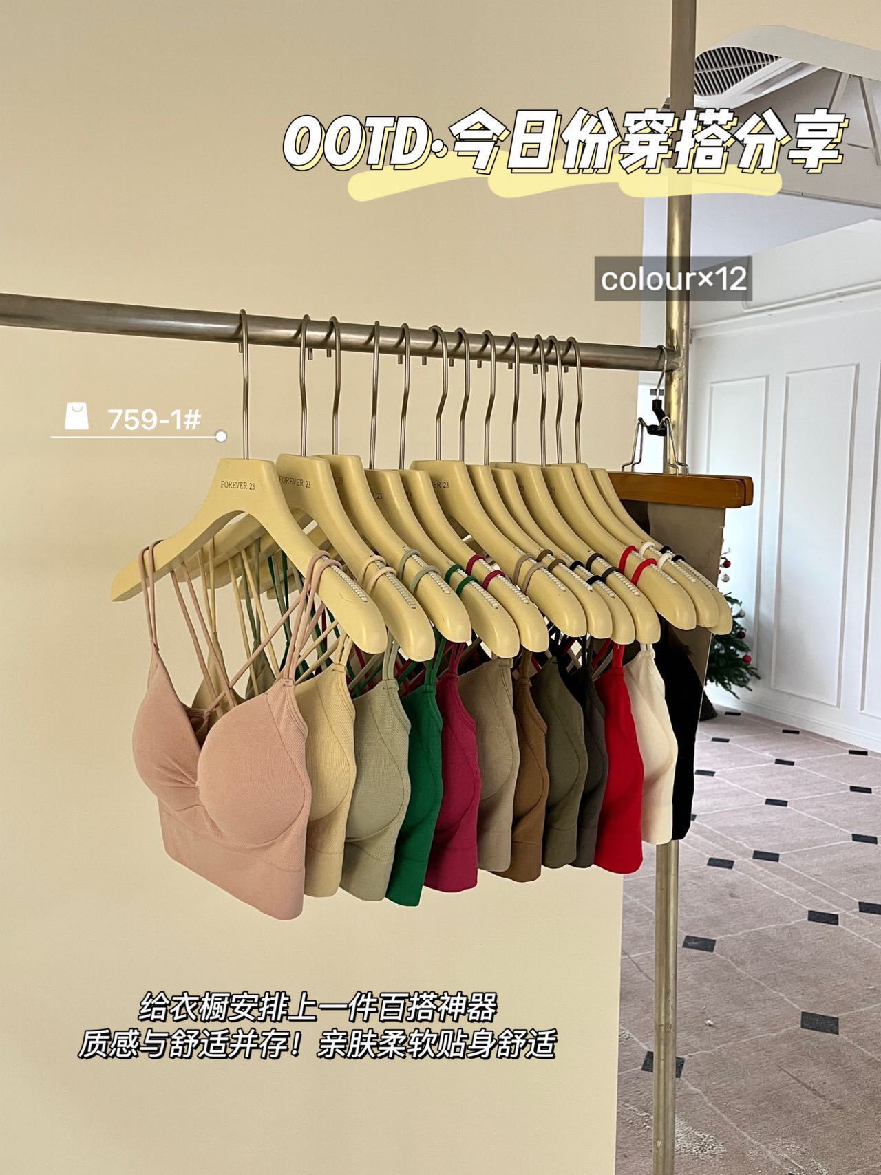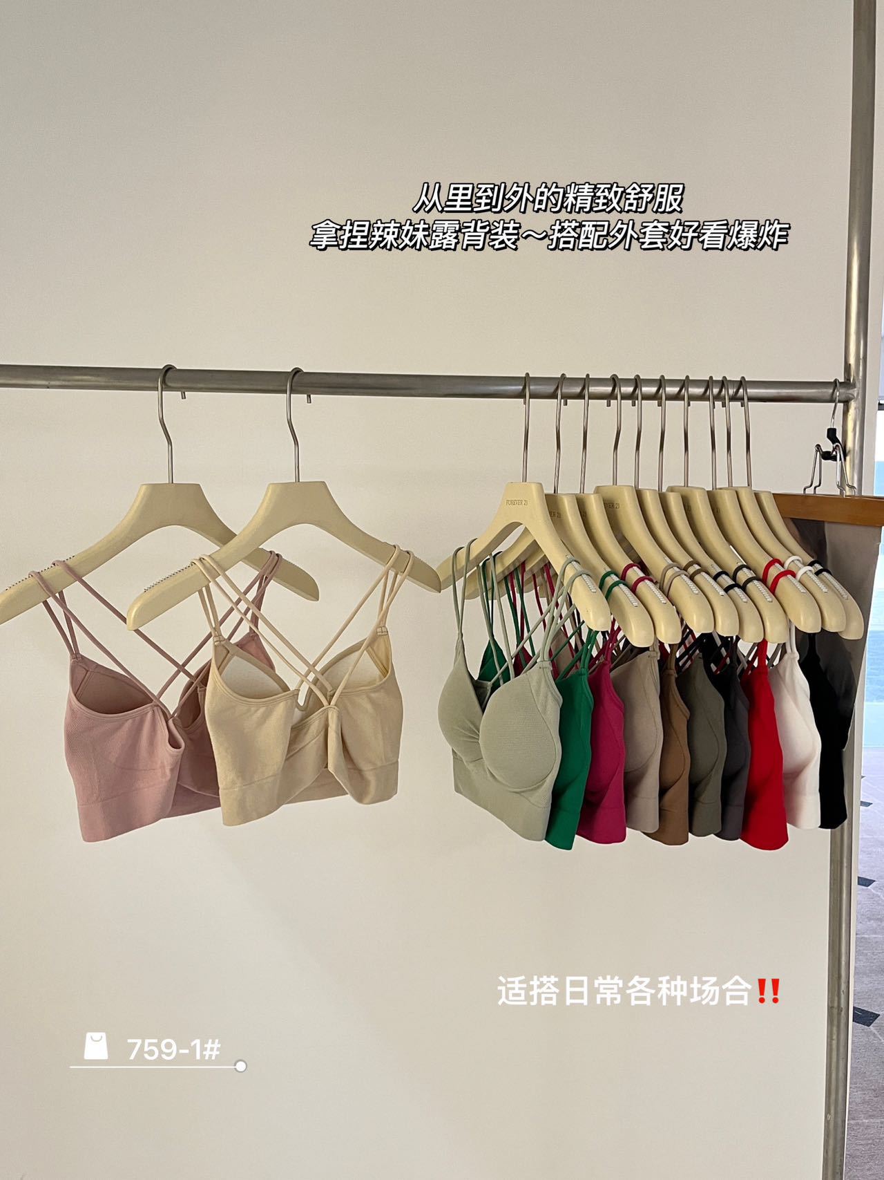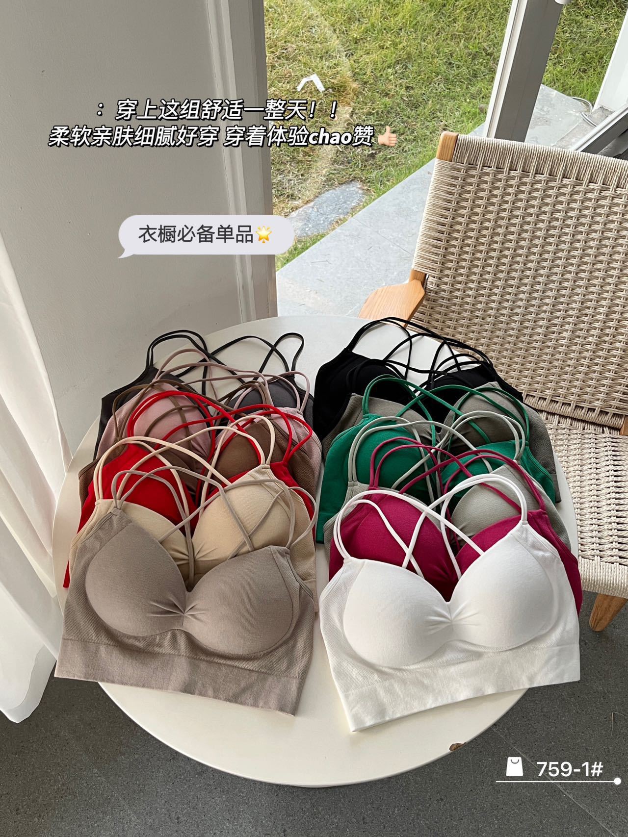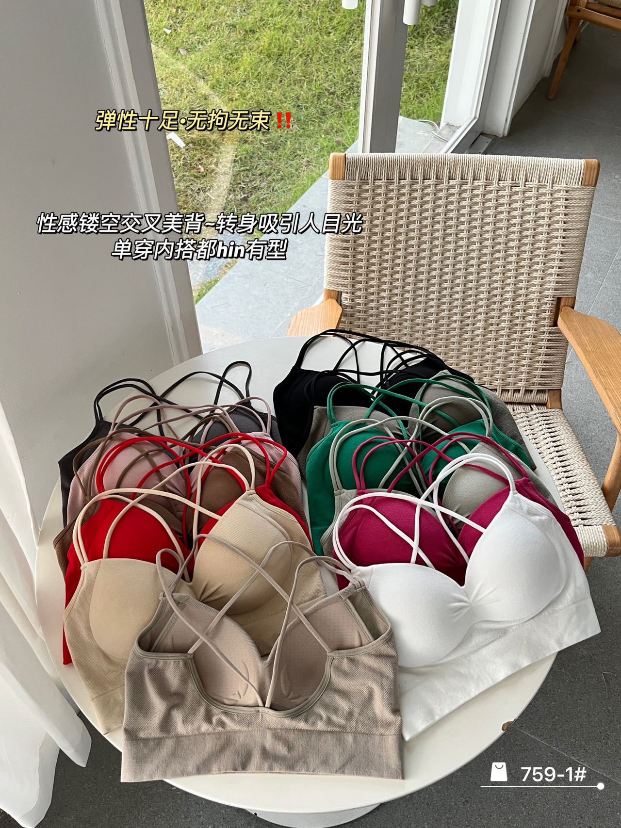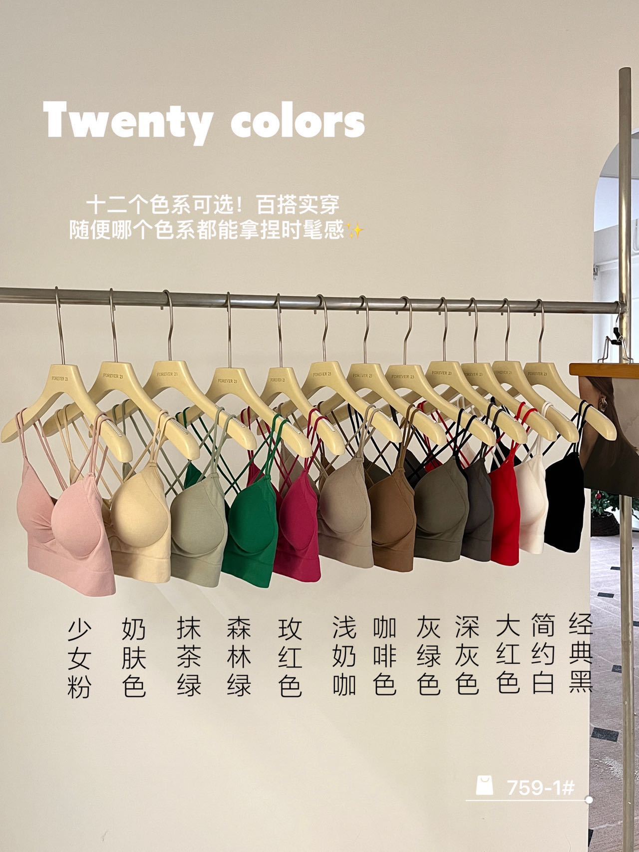 12色系美背下着薄手集结ストラップvネック下着一体固定カップバッククロス美背下着