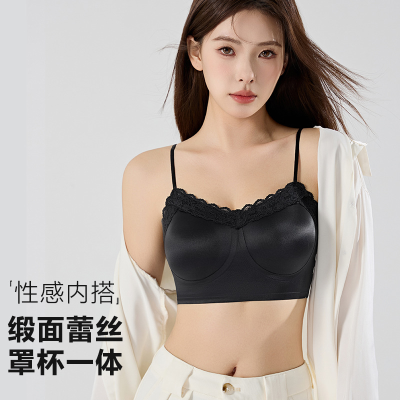 夏の韓国版の氷の糸の跡がないガーターは胸の美背の女性を巻いて、光を防ぐために胸のパッドの外で短いベストの下着を着ます。
