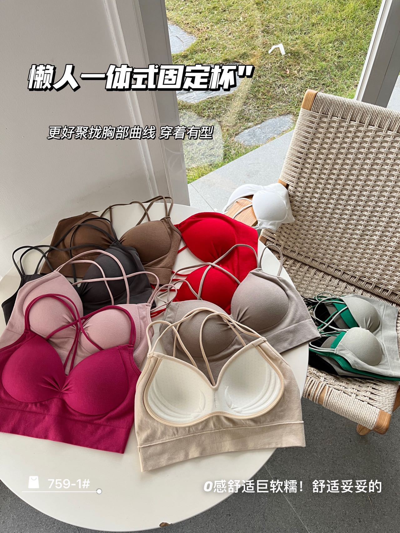 759-1 # バッククロス肩ひも美背下着女性快適ラテックス固定カップ甘い胸のしわが胸の女性を塗る
