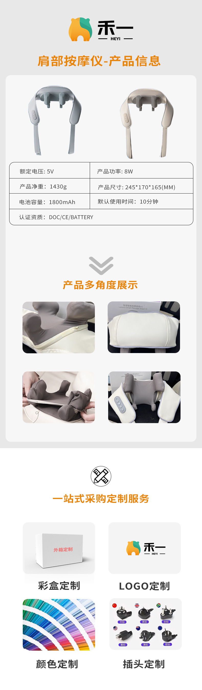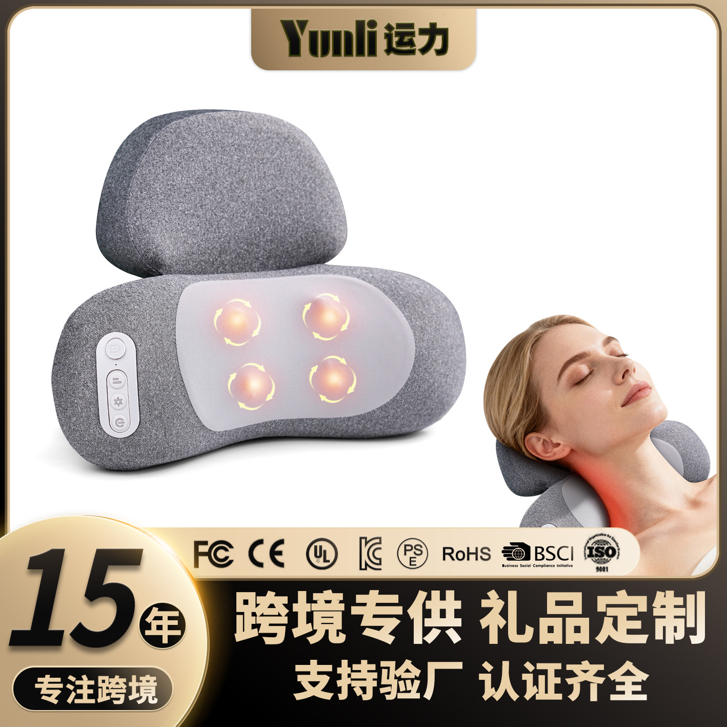 跨境新品颈椎按摩枕充电款记忆棉按摩垫热敷多功能揉捏颈部按摩器