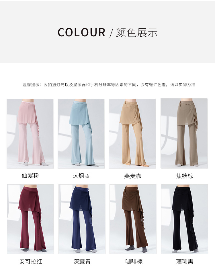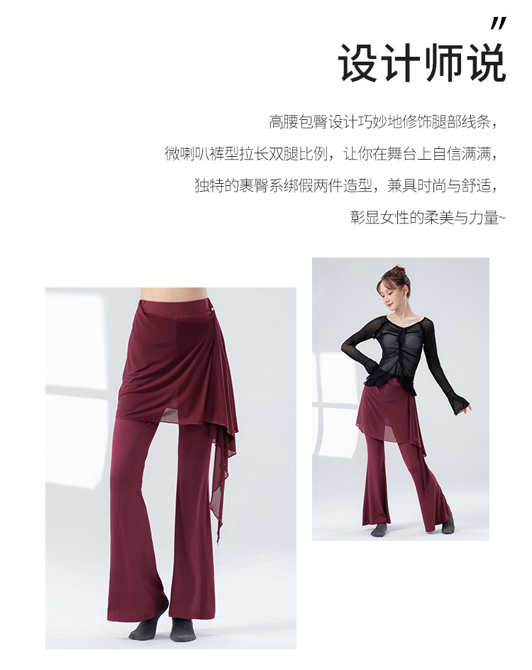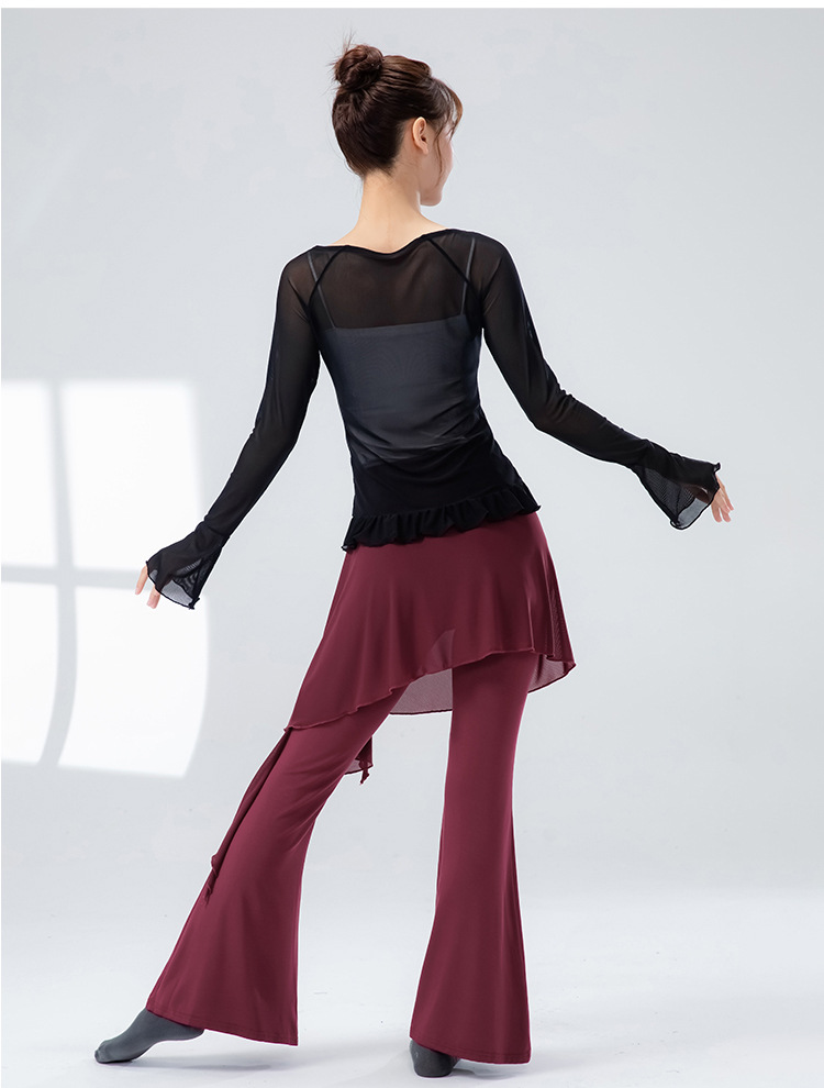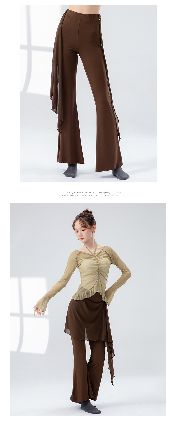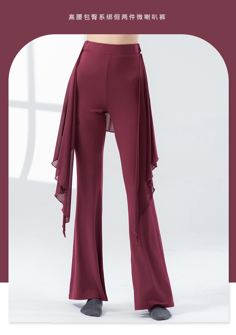女性用クラシックダンスパンツ、新しいスタイルのエレガントなメッシュマイクロフレア弾性ボディパンツ、カジュアルヨガパンツ、モダンダンス練習服