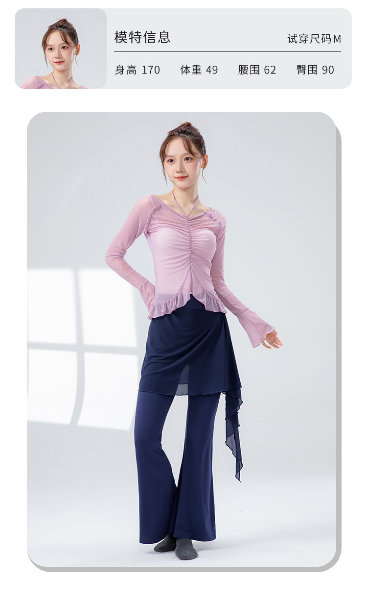 モダンダンス練習服vネックオープンフォーク修身クロス長袖カバー指女性中国舞服形体芸考日常服