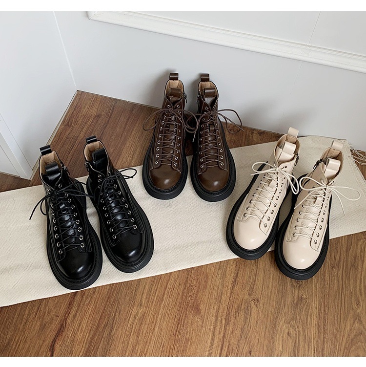 英倫風マーティンブーツの女性のビスケットの厚い底の秋冬の保温綿の靴の百合の機関車の靴の潮insはショートブーツを高く上げます。