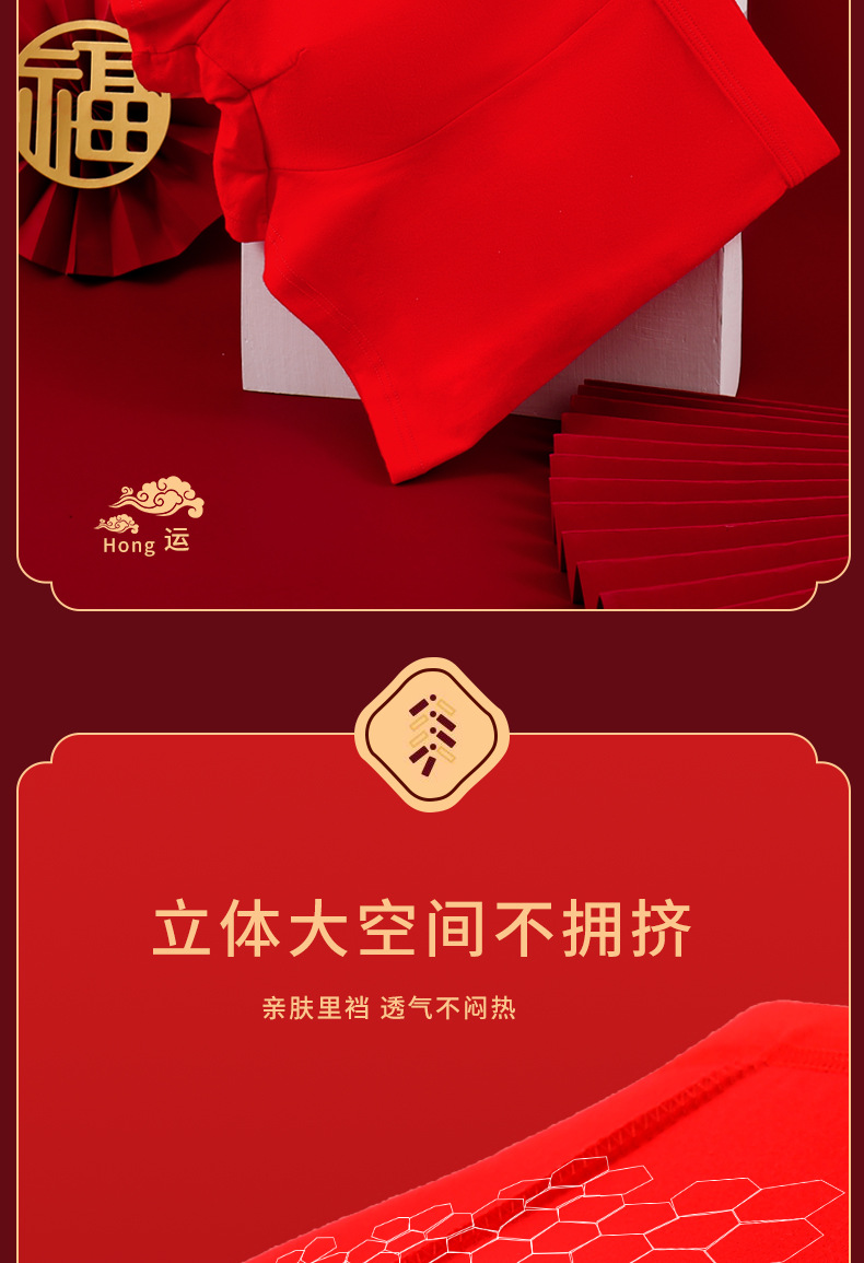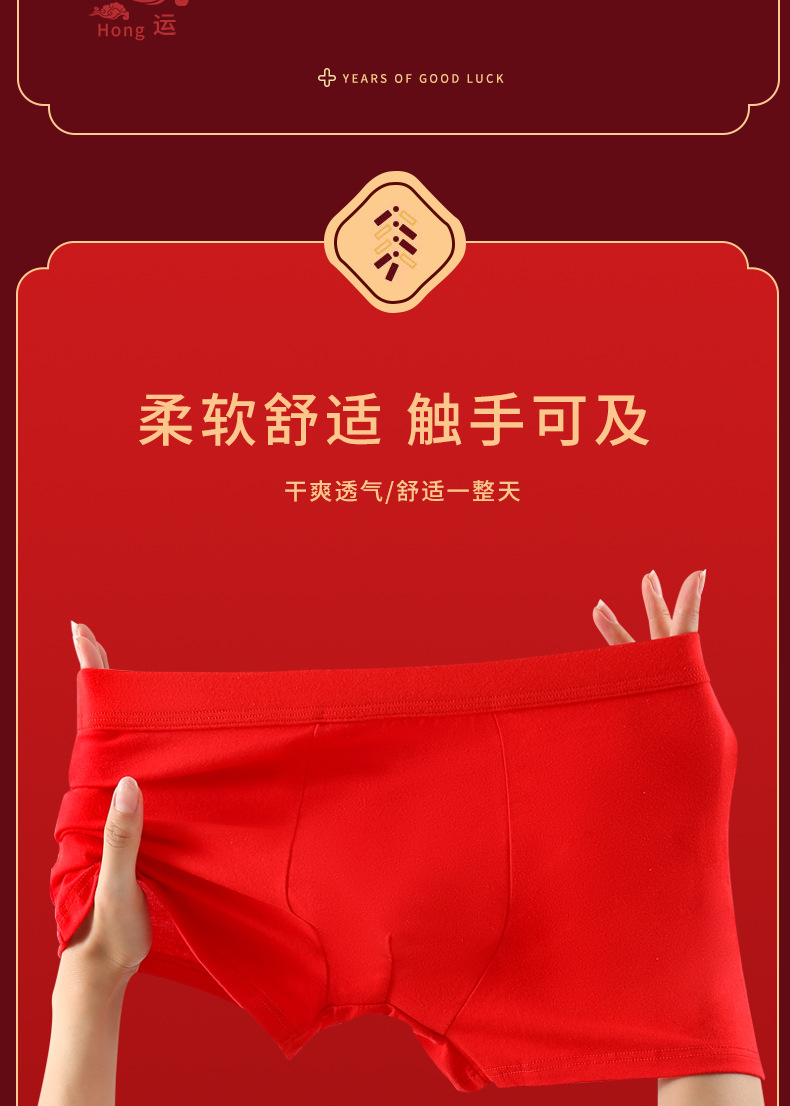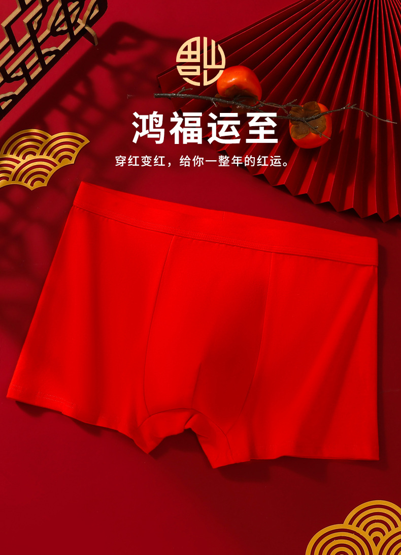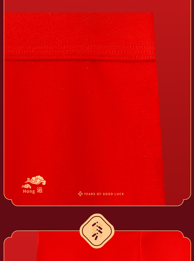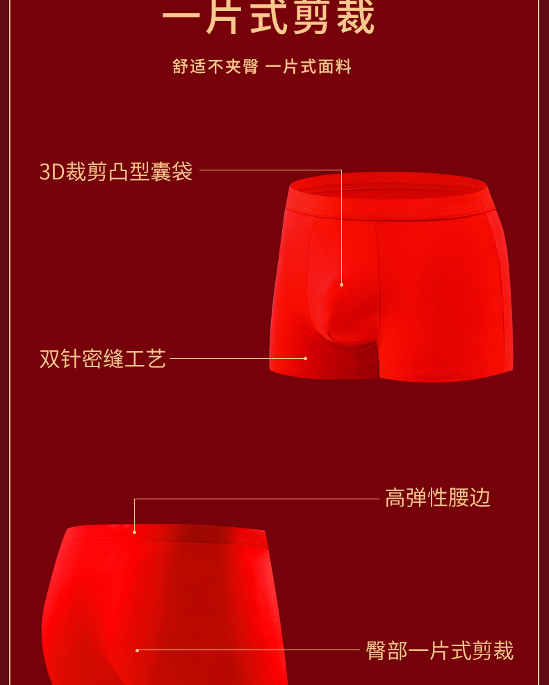 男性の四角の平角の半ズボンの純綿の股の大きい赤い祝い事の下着の本命年の男性の金の通気性の中で腰の赤いパンツ