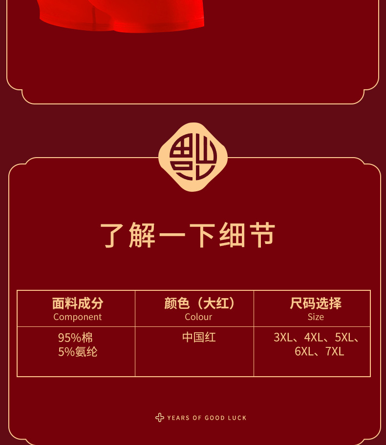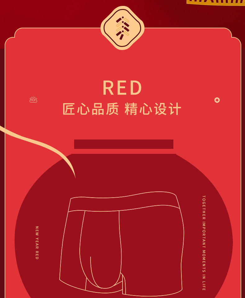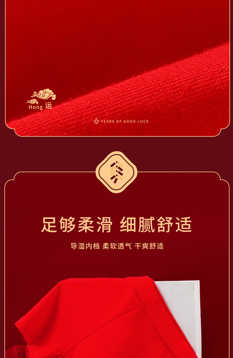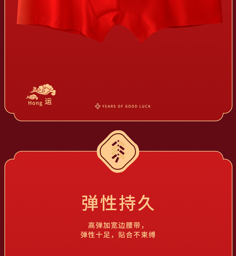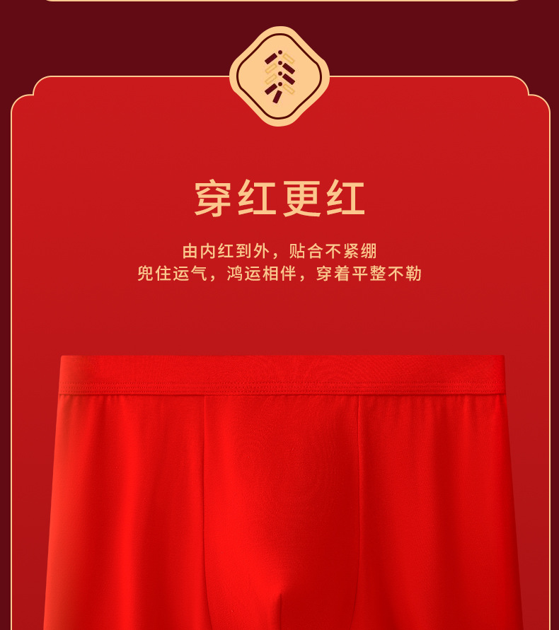 男性の四角の平角の半ズボンの純綿の股の大きい赤い祝い事の下着の本命年の男性の金の通気性の中で腰の赤いパンツ