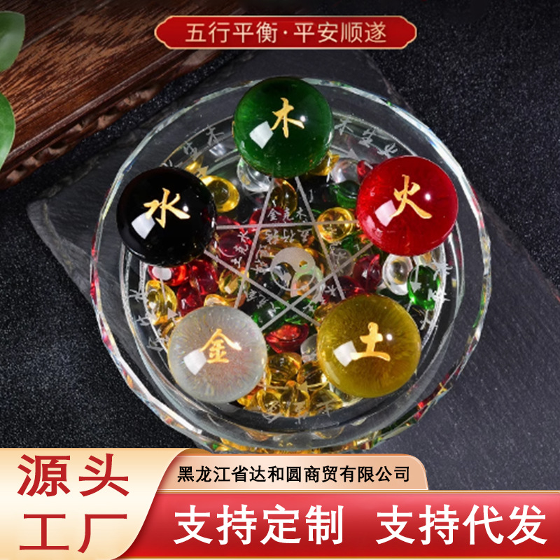 メーカー直売卸売りカラー五路財神水晶五行置物金木水火土水晶招財五行珠