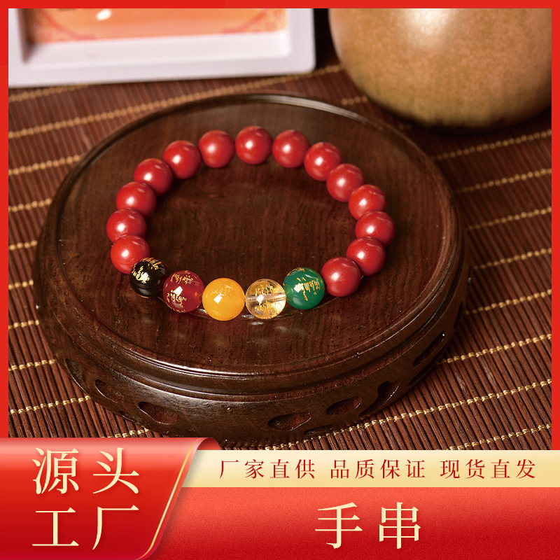 新商品五路財神朱砂ブレスレット朱砂男女金本命年朱砂手串五路紫金砂ブレスレット