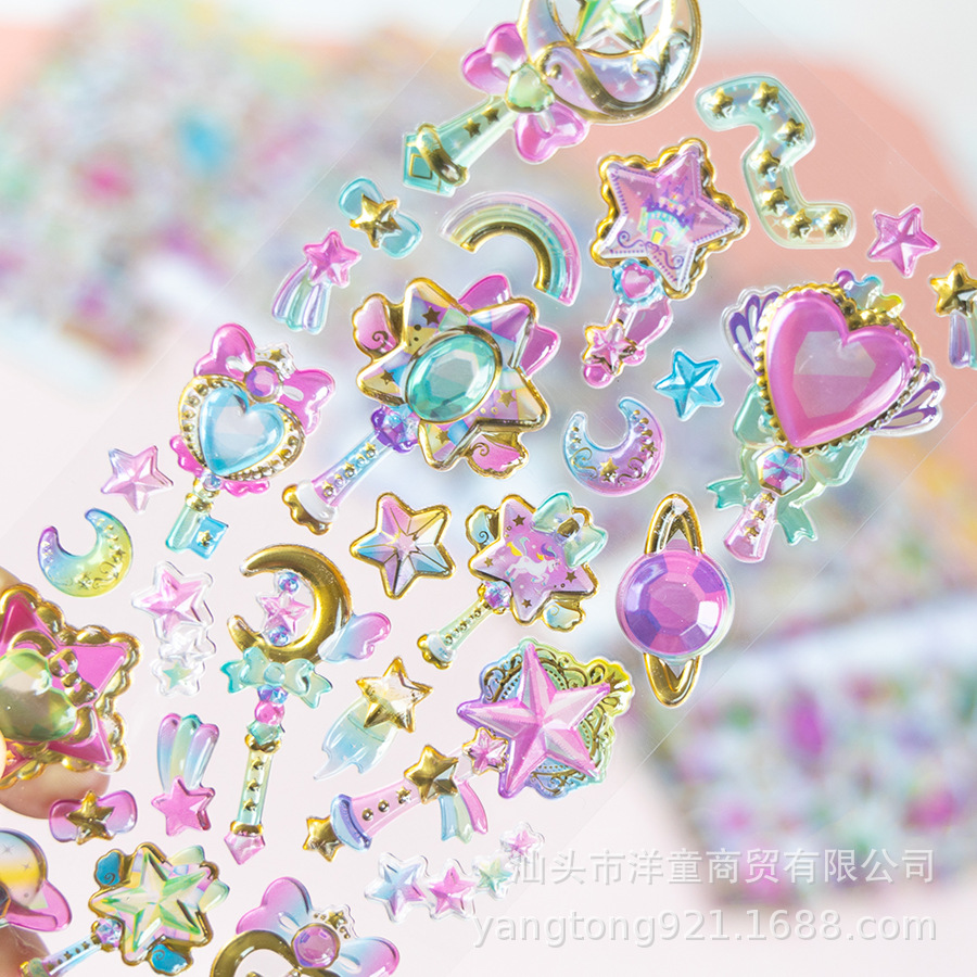 Ytey子供漫画小清新奨励幻桃心水晶レリーフシール泡綿立体手帳装飾画