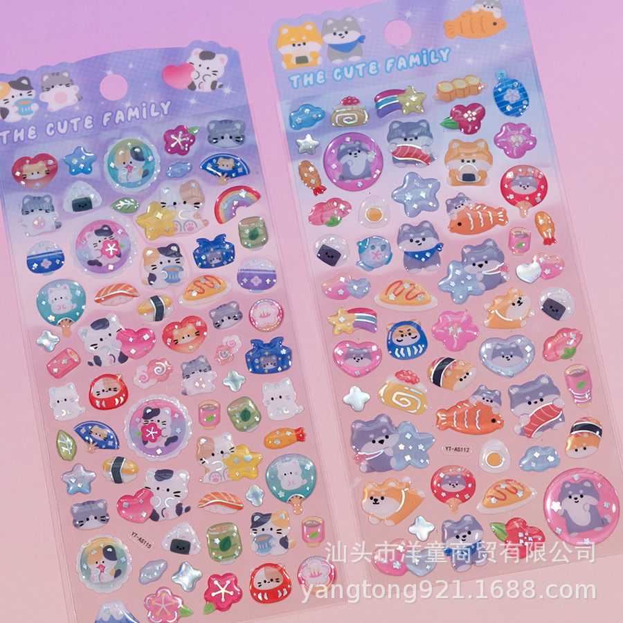 Ytdn漫画かわいい子供の立体的な揺らぐ注水の油のステッカーの装飾の手帳の幼稚園のシールの卸売り