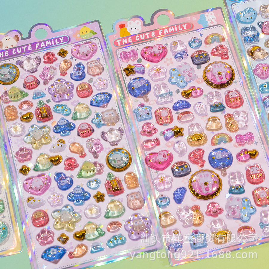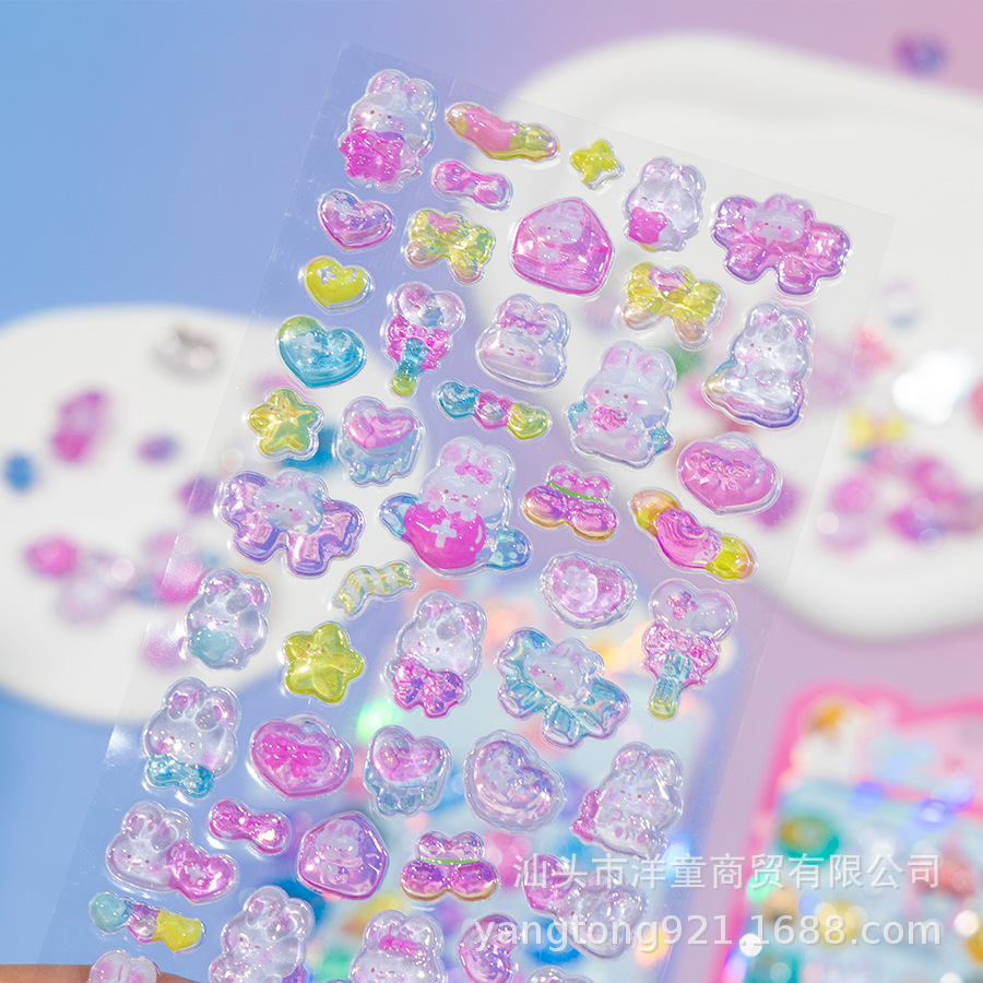 儿童卡通小清新奖励梦幻兔子猫水晶可爱浮雕立体手帐装饰洋童贴纸