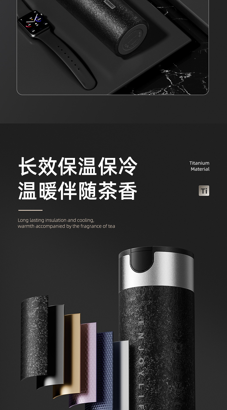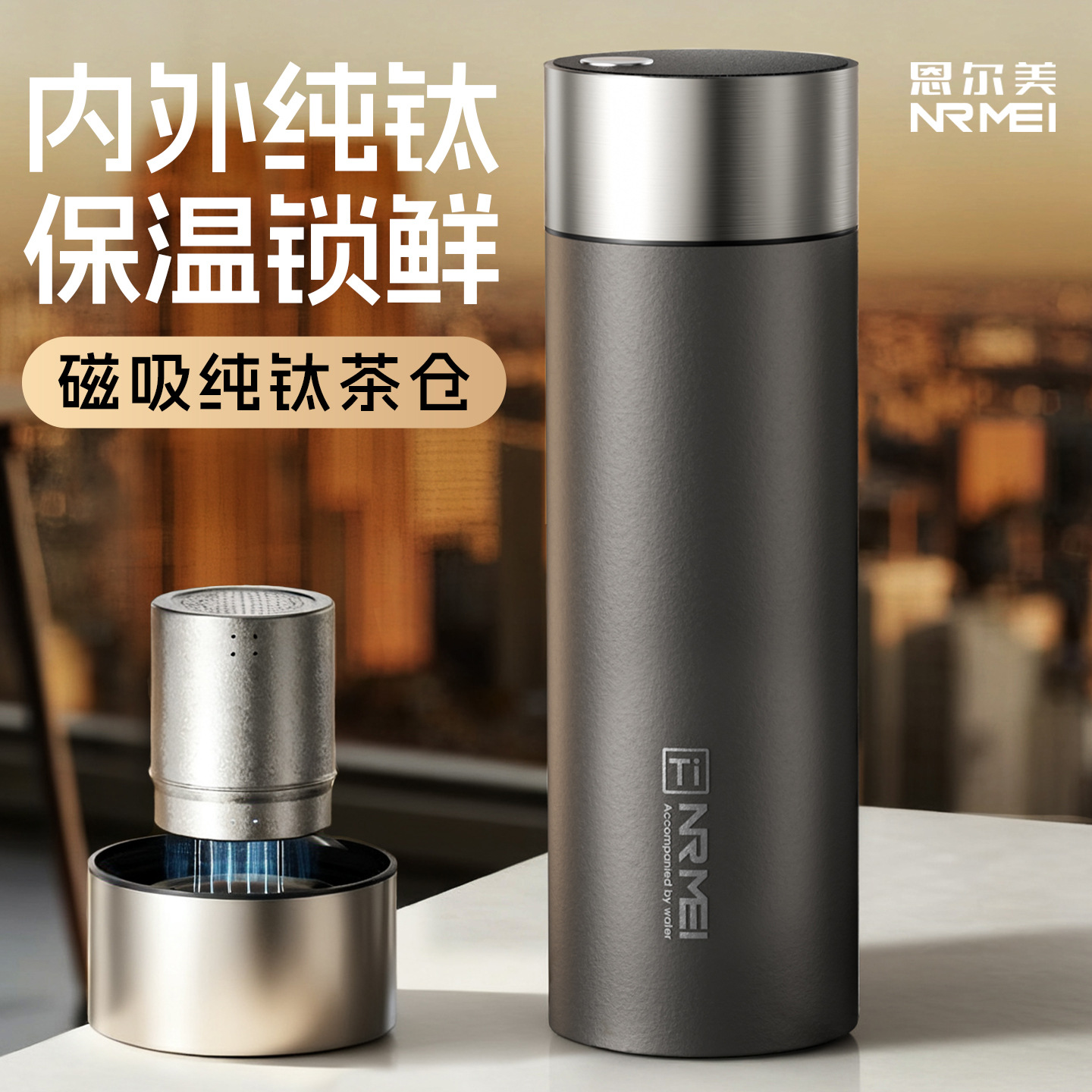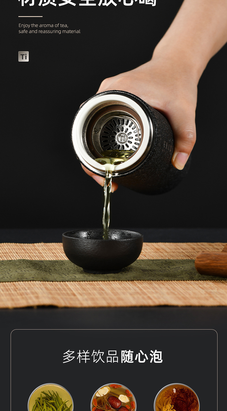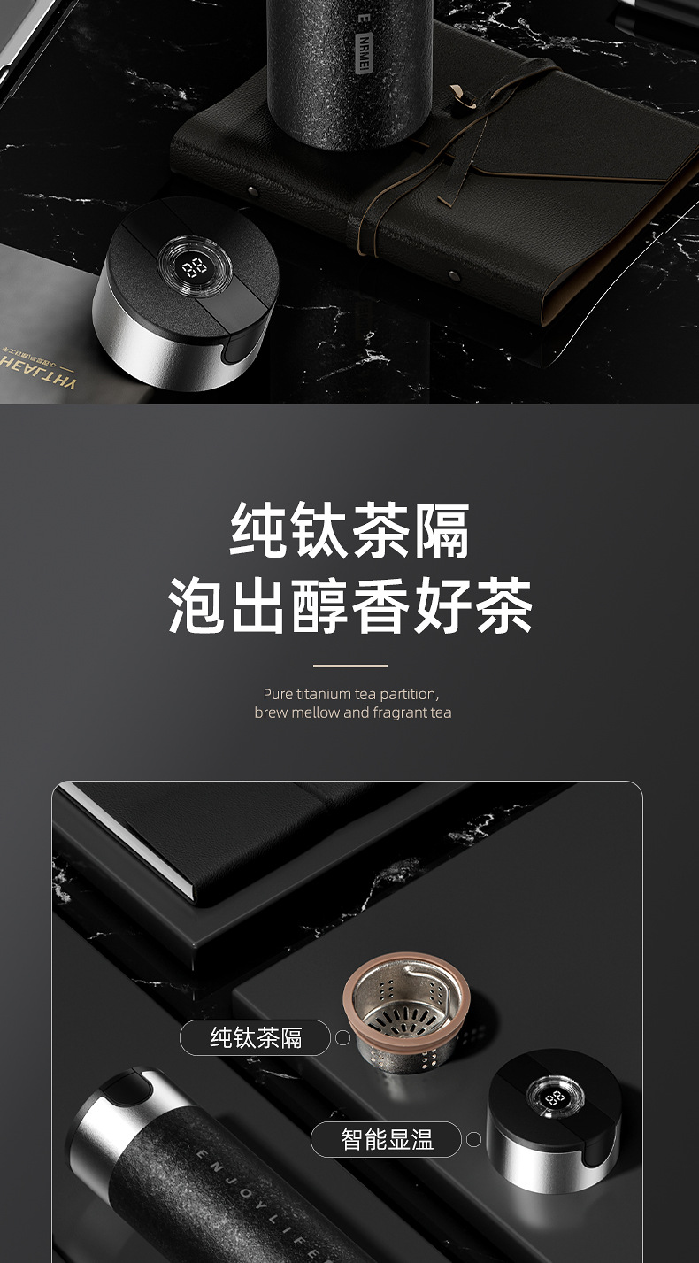 恩爾美純チタン保温カップ2024新男大容量茶水分離ティーカップ高級ビジネス携帯カップ