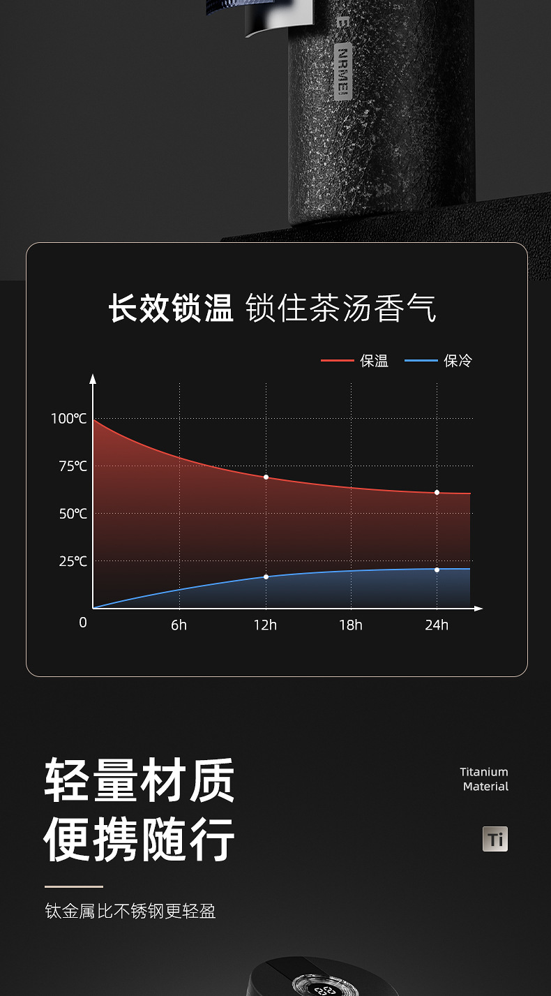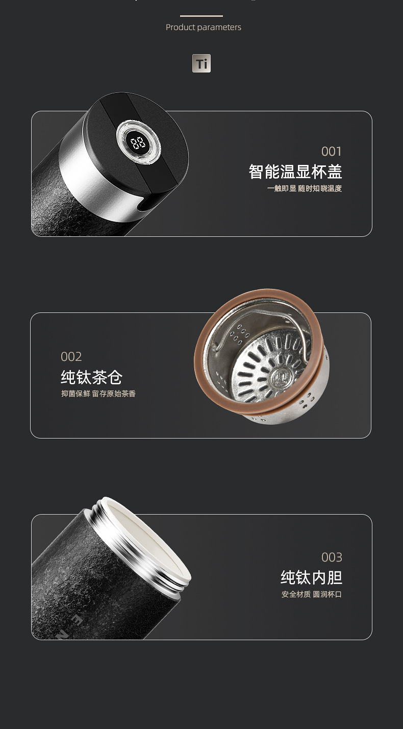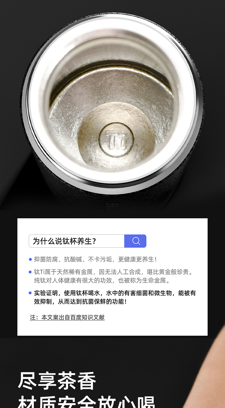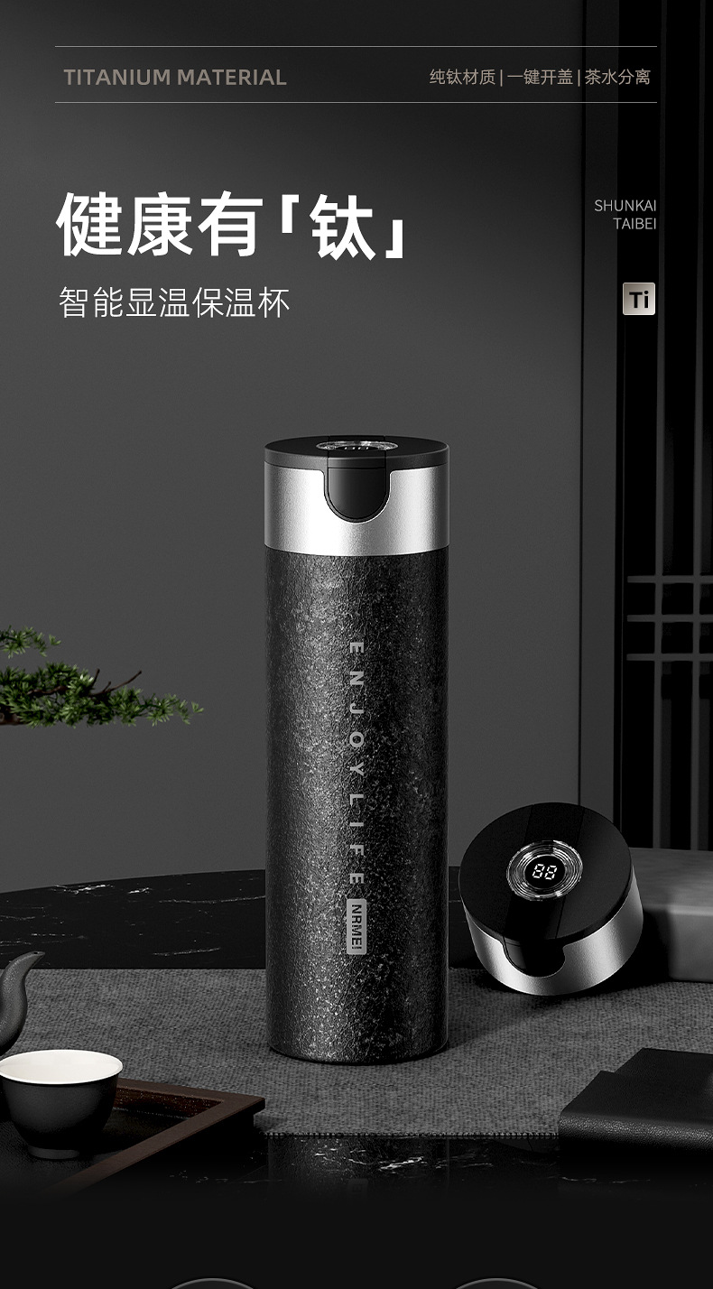 纯钛茶水分离泡茶杯一键开盖保温杯大容量男钛杯智能女高颜值水杯