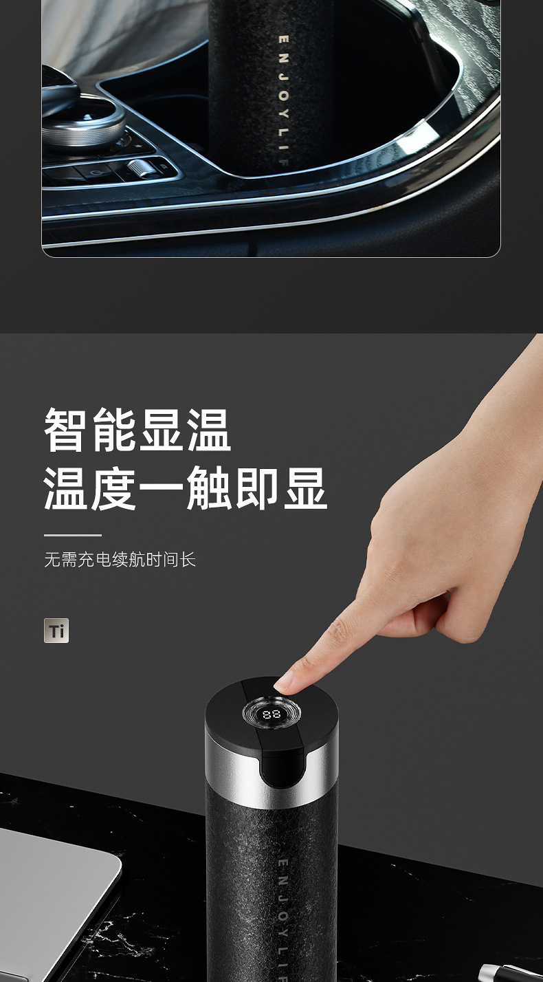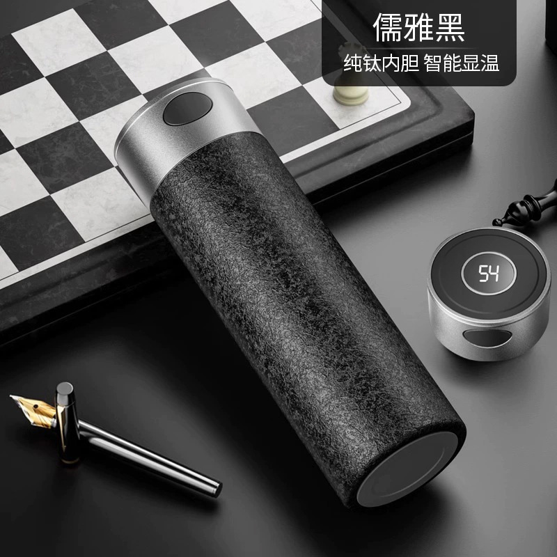 新しい英国ライナー純チタンクイックオープン魔法瓶カップ温度表示スマート男性と女性の抗菌ウォーターカップハイエンドギフトボックス
