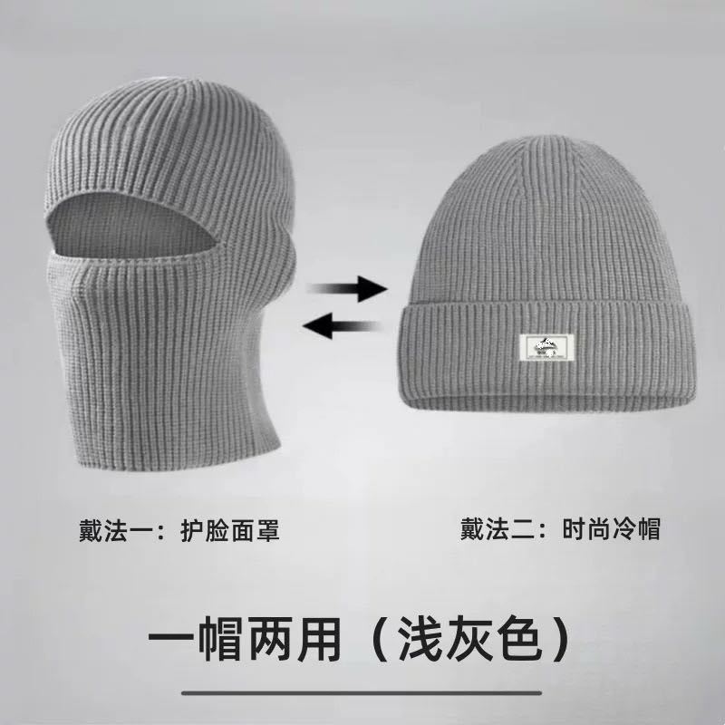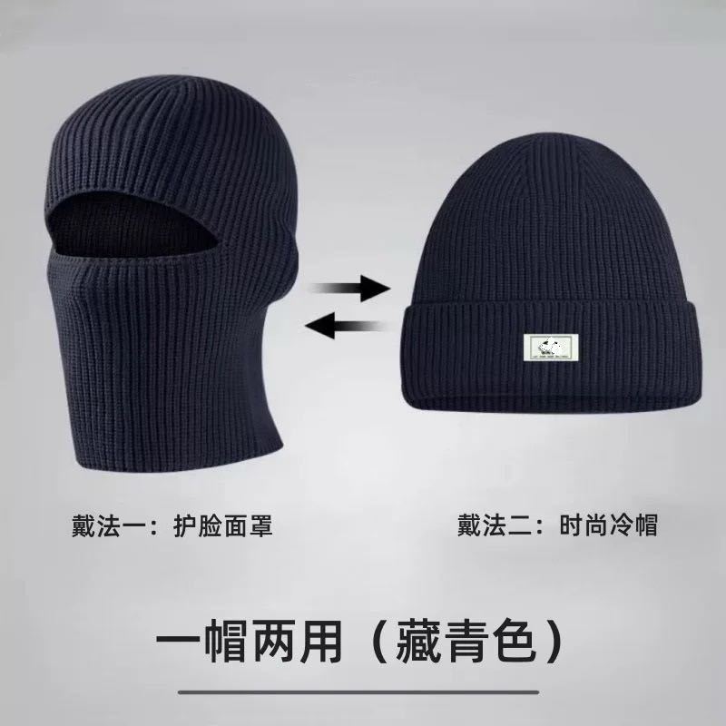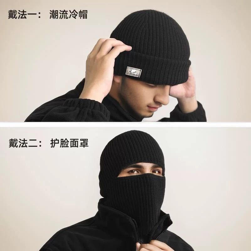 秋冬季户外骑行保暖套头帽一帽两戴面罩帽子防寒护脸针织毛线帽男