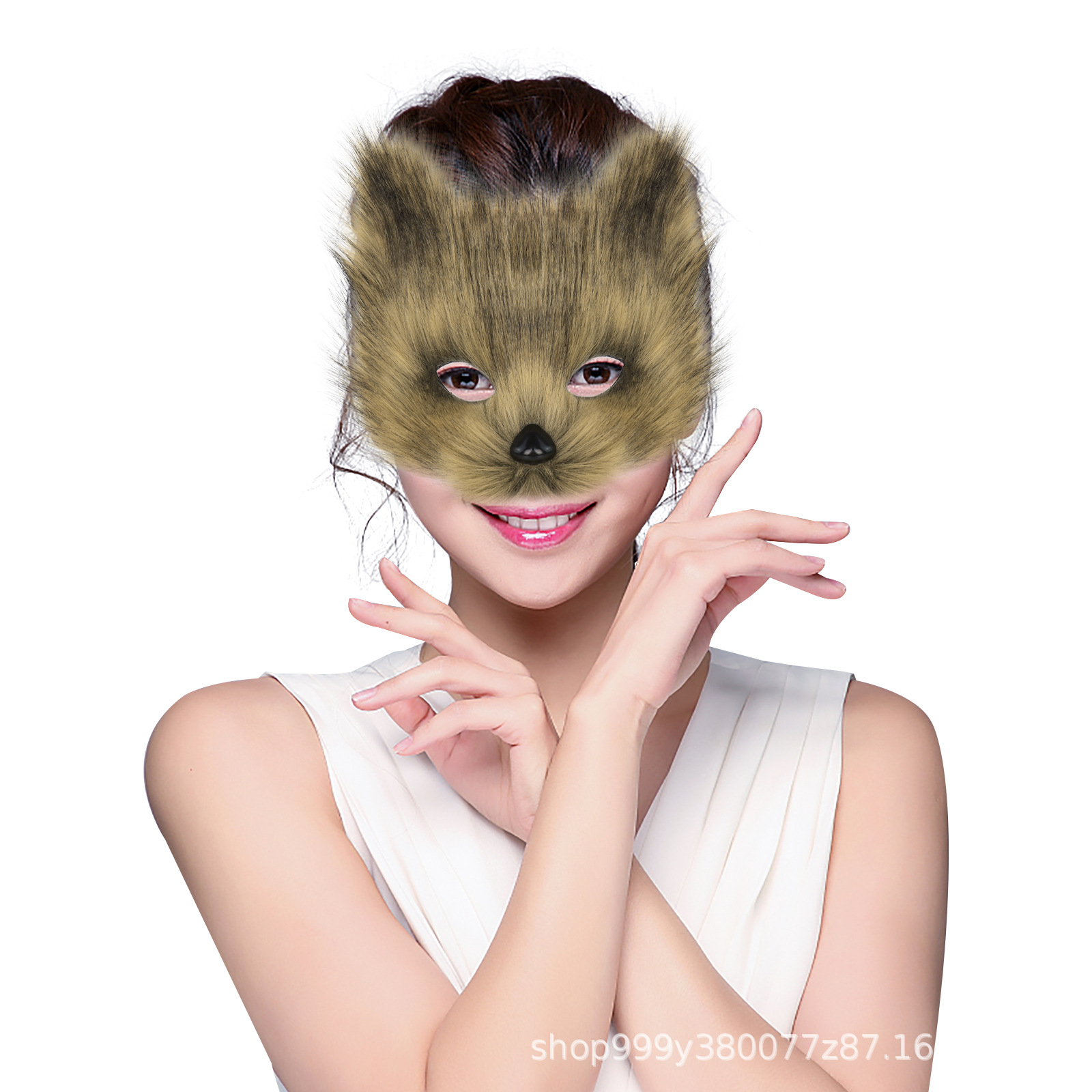 ハロウィンカーニバルファッション動物マスクバイキングキツネマスク偽毛頭飾りコスウルフマンマスク