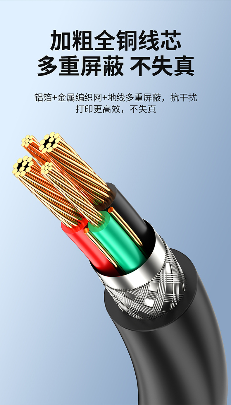 禄訊usbプリント線純銅線芯プリンタpvc環境保護ダブルシールド高速角口0.0データ線