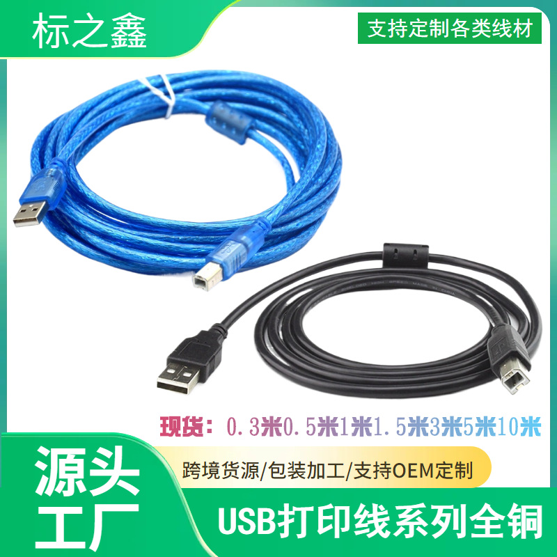Usbプリントケーブル2.0プリンタデータケーブル全銅黒色usb角口プリントケーブル1.5メートル10メートル