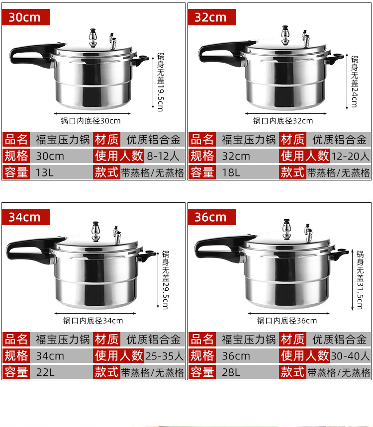福宝高圧鍋家庭用ガス電磁炉通用厚い食品級安全防爆商用鍋具