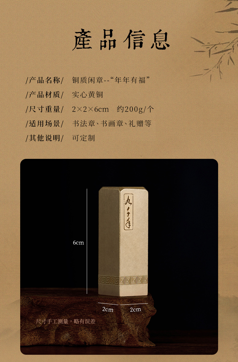 毎年福がある2*2*6cm黄銅閑章完成品硬筆書道銅章書道印鑑卸売り書画印鑑