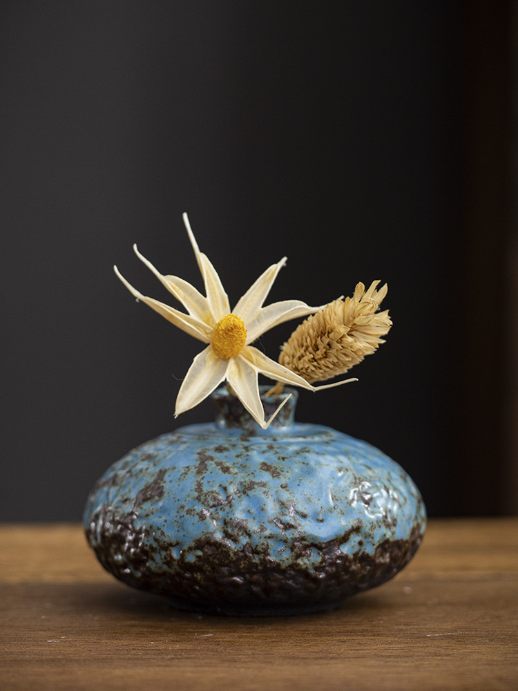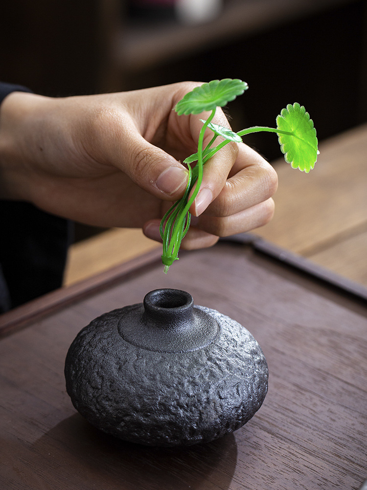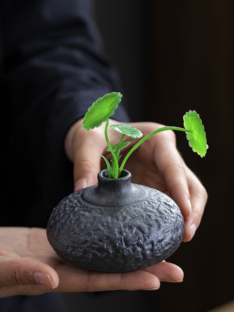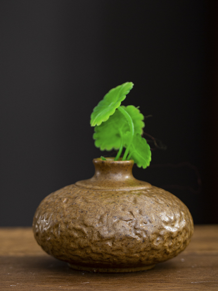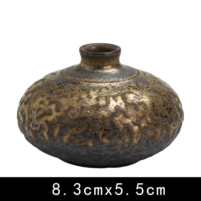 金の陶磁器の小さい花瓶の中国式の乾いた花は水を挿して粗い陶の花器のデスクトップを育成して禅の意の家の小さい置物を飾ります。