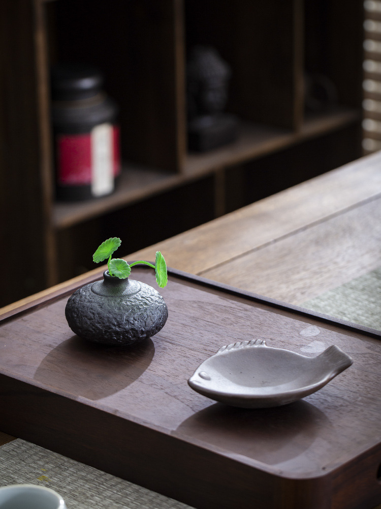 招進宝禅意茶壺置き台 日本式水貯蔵乾燥泡立て台 茶器トレイ レトロな丸型茶台 陶器茶道アクセサリー