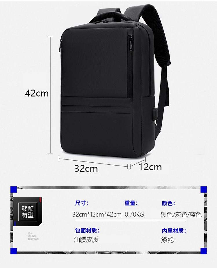 拡張可能なノートパソコンのバックパック男性黒色多機能大容量手提げビジネスバッググレー