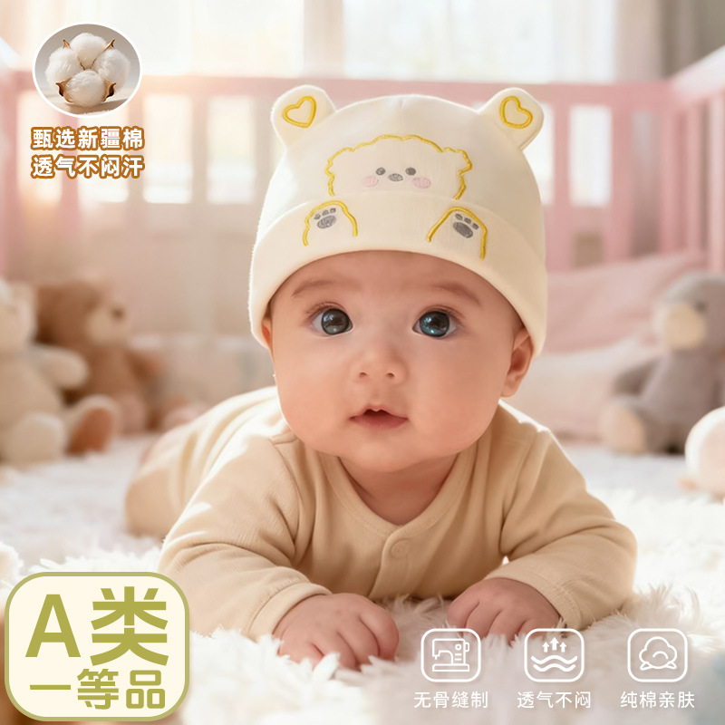 赤ちゃん胎帽新生児春秋赤ちゃんかわいい四季二重男女純綿骨なしa類薄手保護キャップ