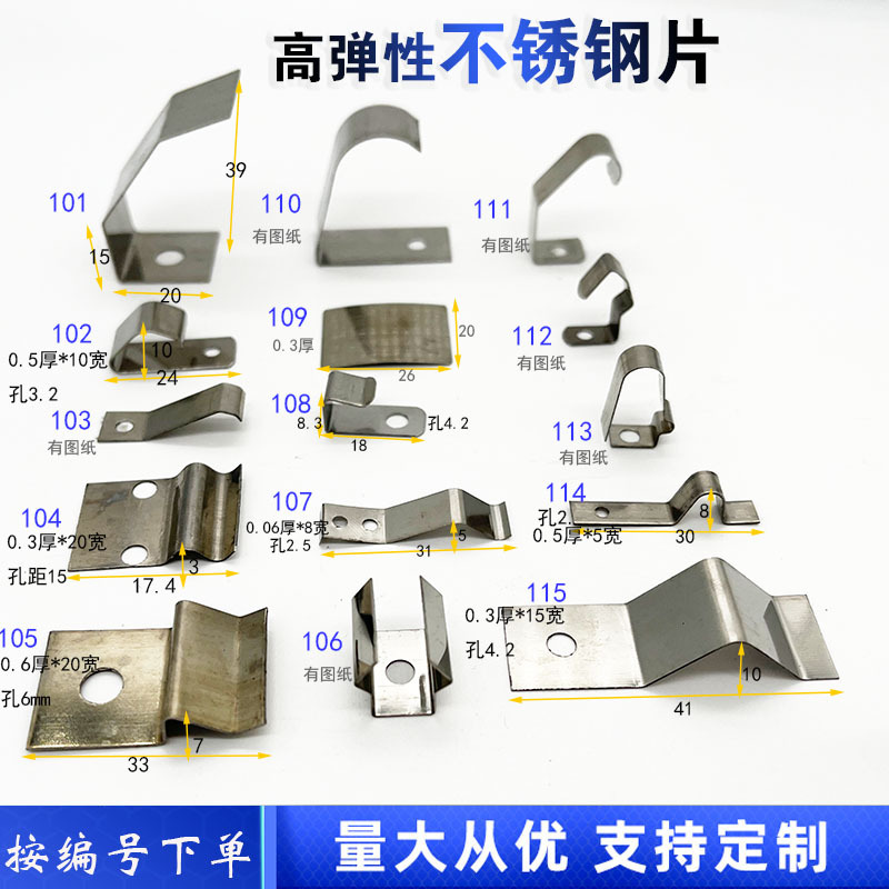 C型バネ片アーチ形片圧線片ステンレス片猛鋼曲げ片位置決め弾性板アルミ合内蔵弾性板
