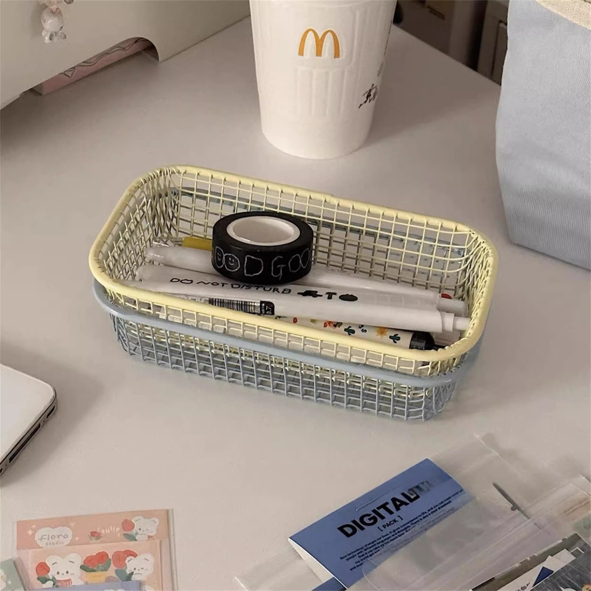 ins铁艺书桌杂物收纳小物件收纳篮学生办公文具整理收纳篮桌面篮