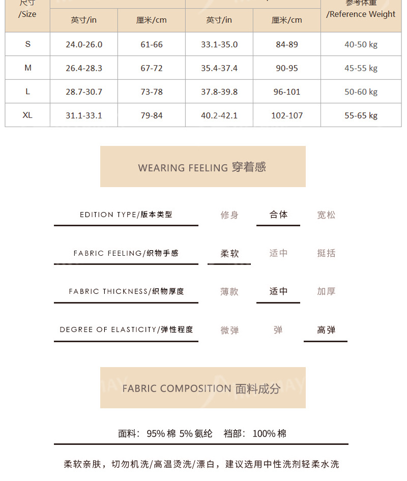 主な生地成分の含有量 95% (含む) ~ 100% (含まない),95% コットン + 5% スパンデックス