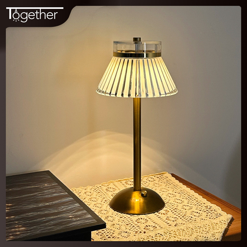 国境を越えたレトロなLED金属電気スタンドクリエイティブレストラン屋外テーブルライトカフェ寝室のベッドのベッドのタッチナイトライト