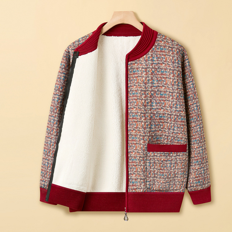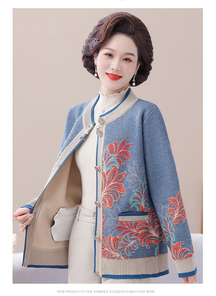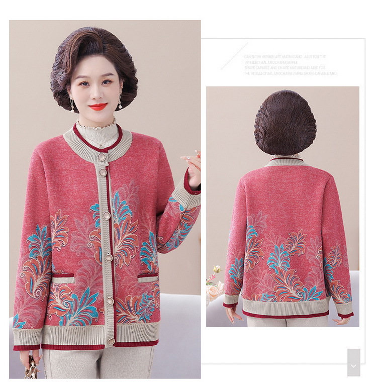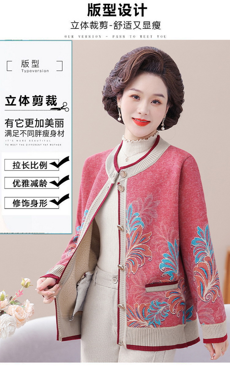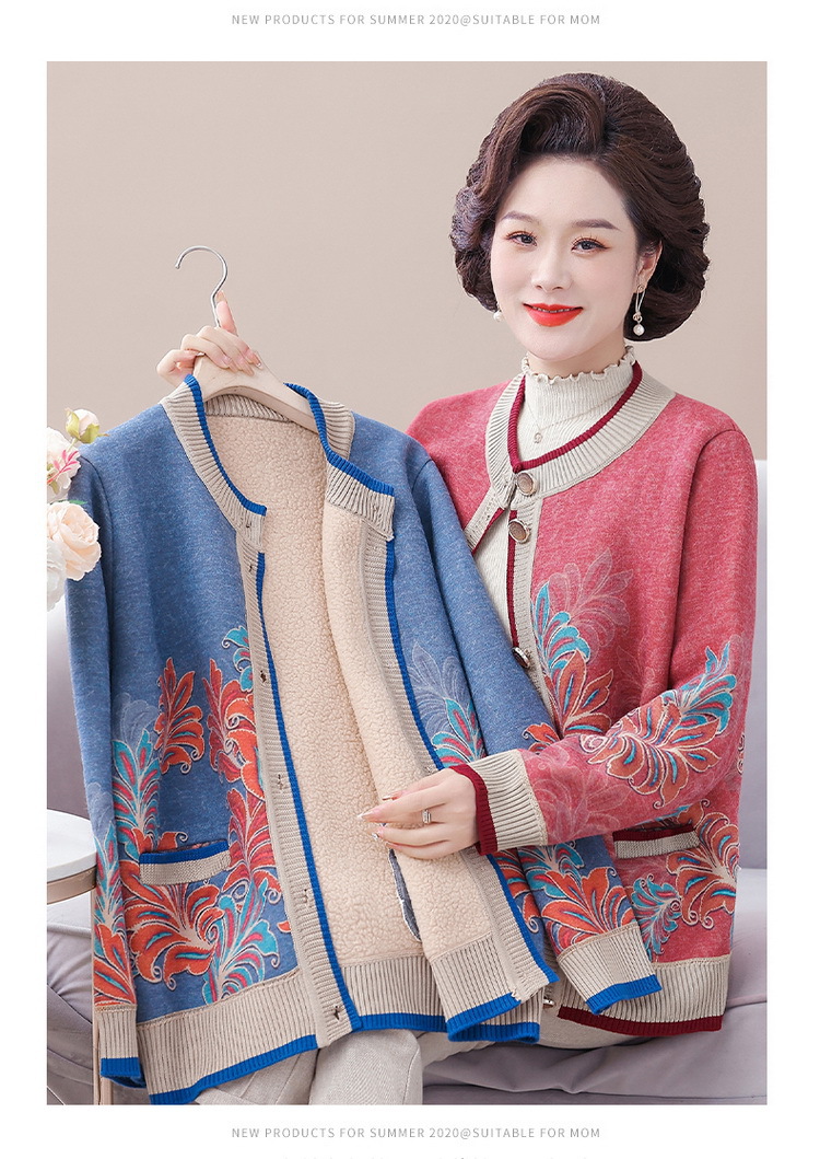お母さんの冬の服の一体の絨毛のセーターの洋風の中で上着のファッションの中高年の婦人服の秋冬とベルベットの保温を厚くします。
