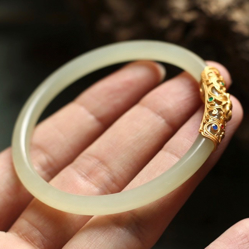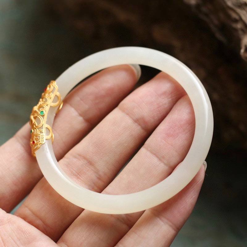 本格的な天然羊脂白新疆と田玉のブレスレット