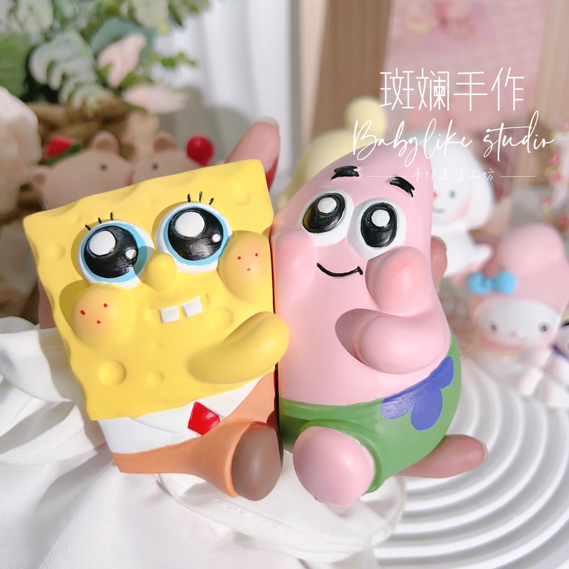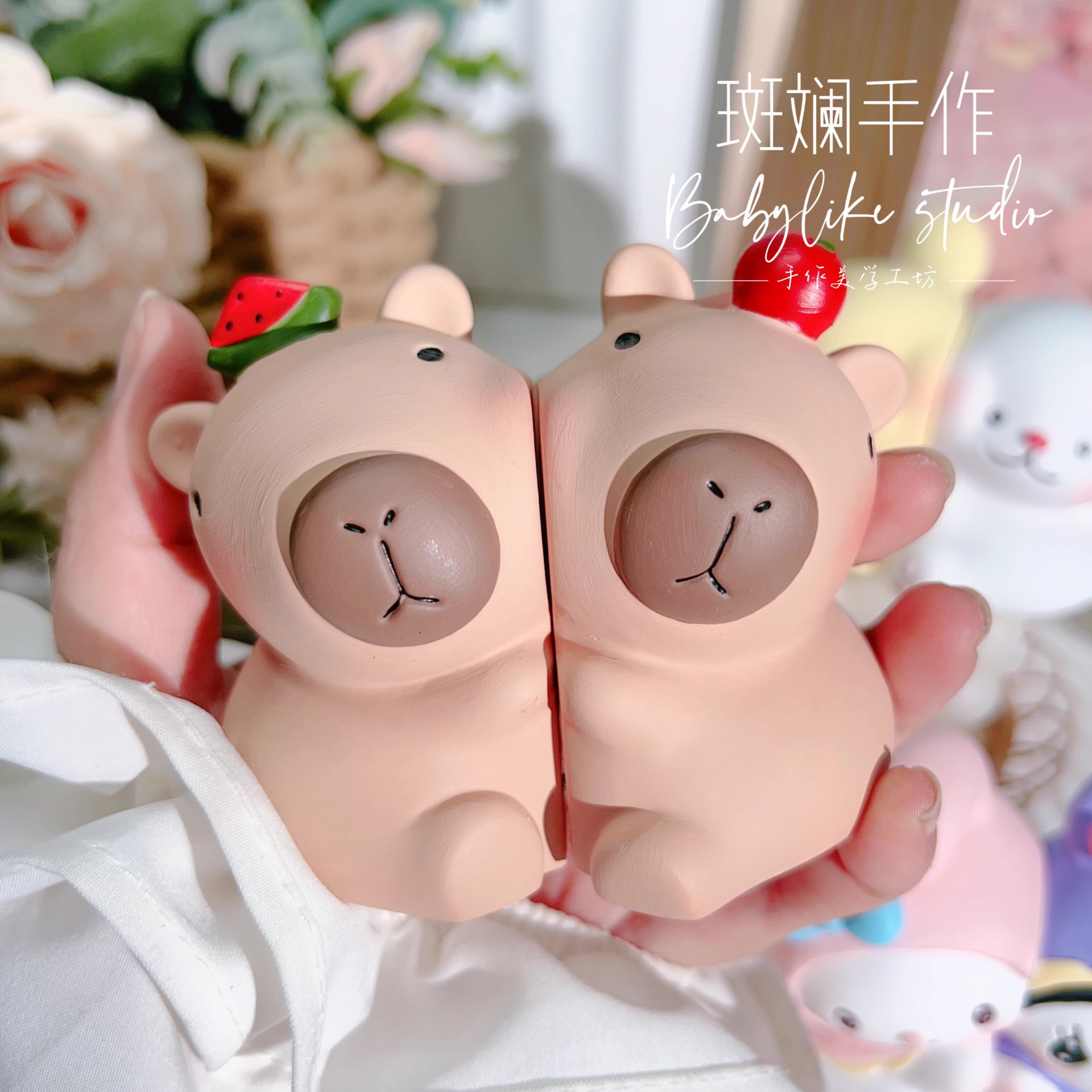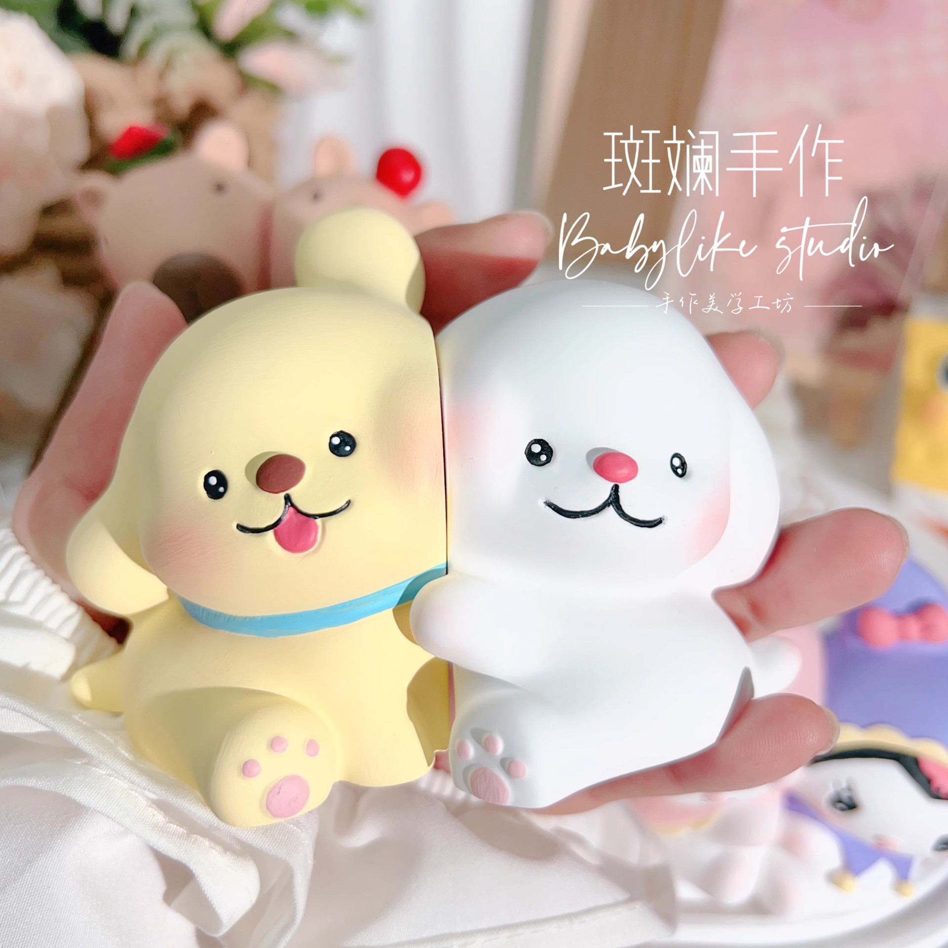 香薫平面石膏人形大サイズ動物収納盤女子男の子かわいい人形置物子供手塗り