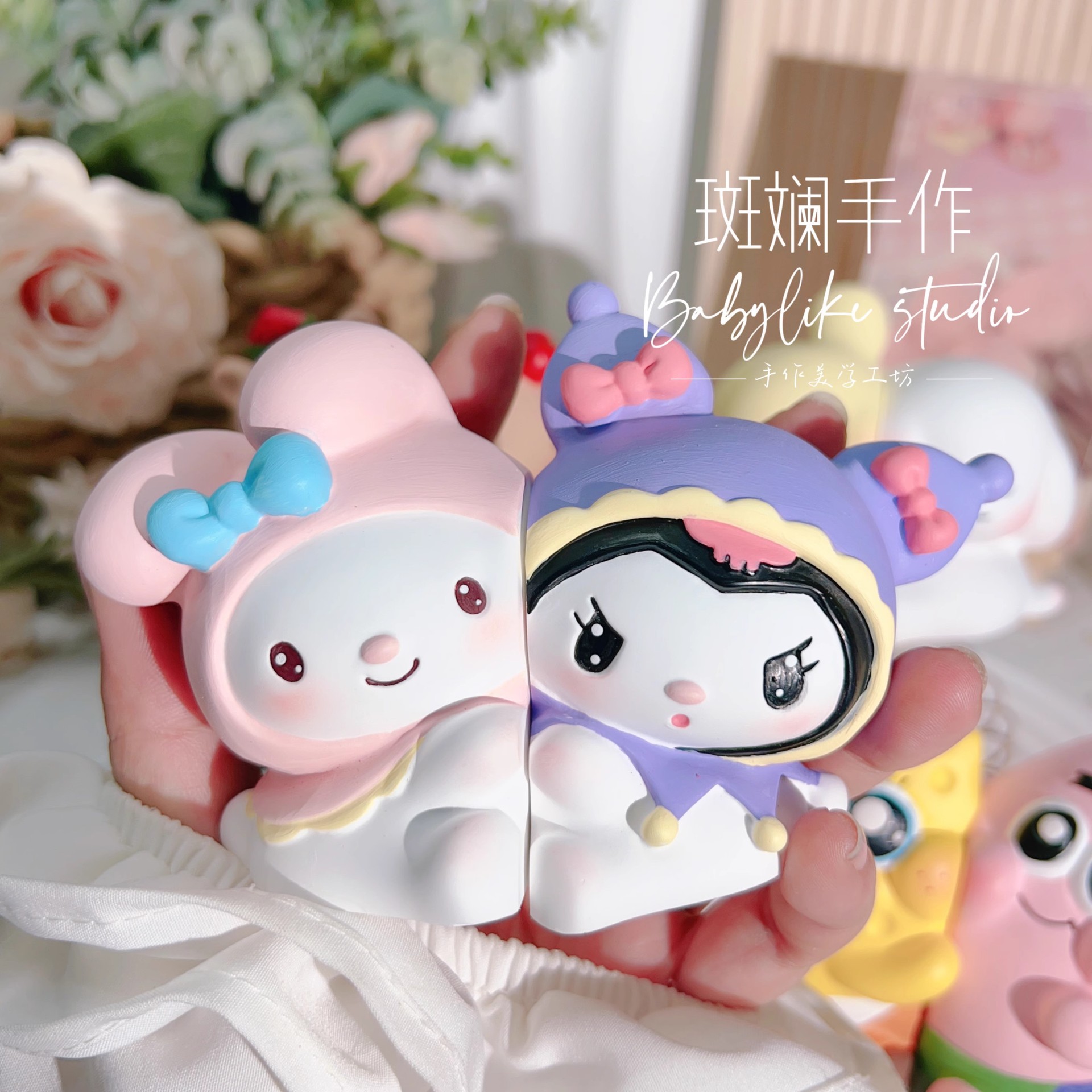 纯手工可爱双星人香薰立体石膏娃娃白胚diy 涂色手工礼物团建活动