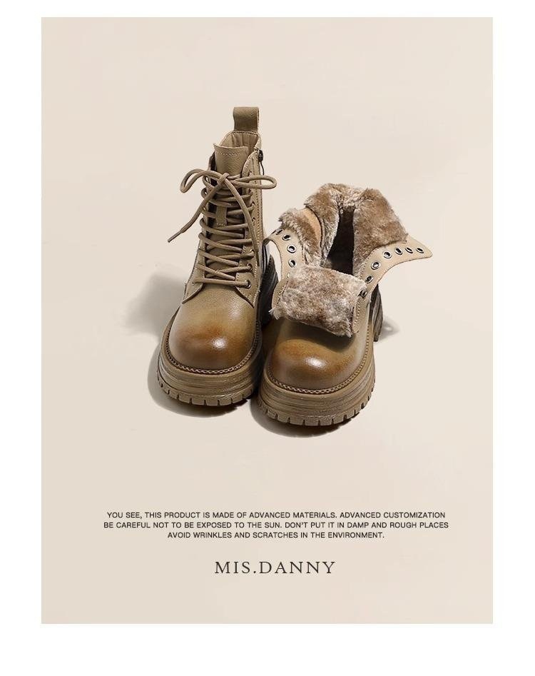 靴の女性2024の新しい秋冬のベルベットの厚い綿の靴の茶色のブーツは厚い底の英倫のマーティンのショートブーツを高めます。