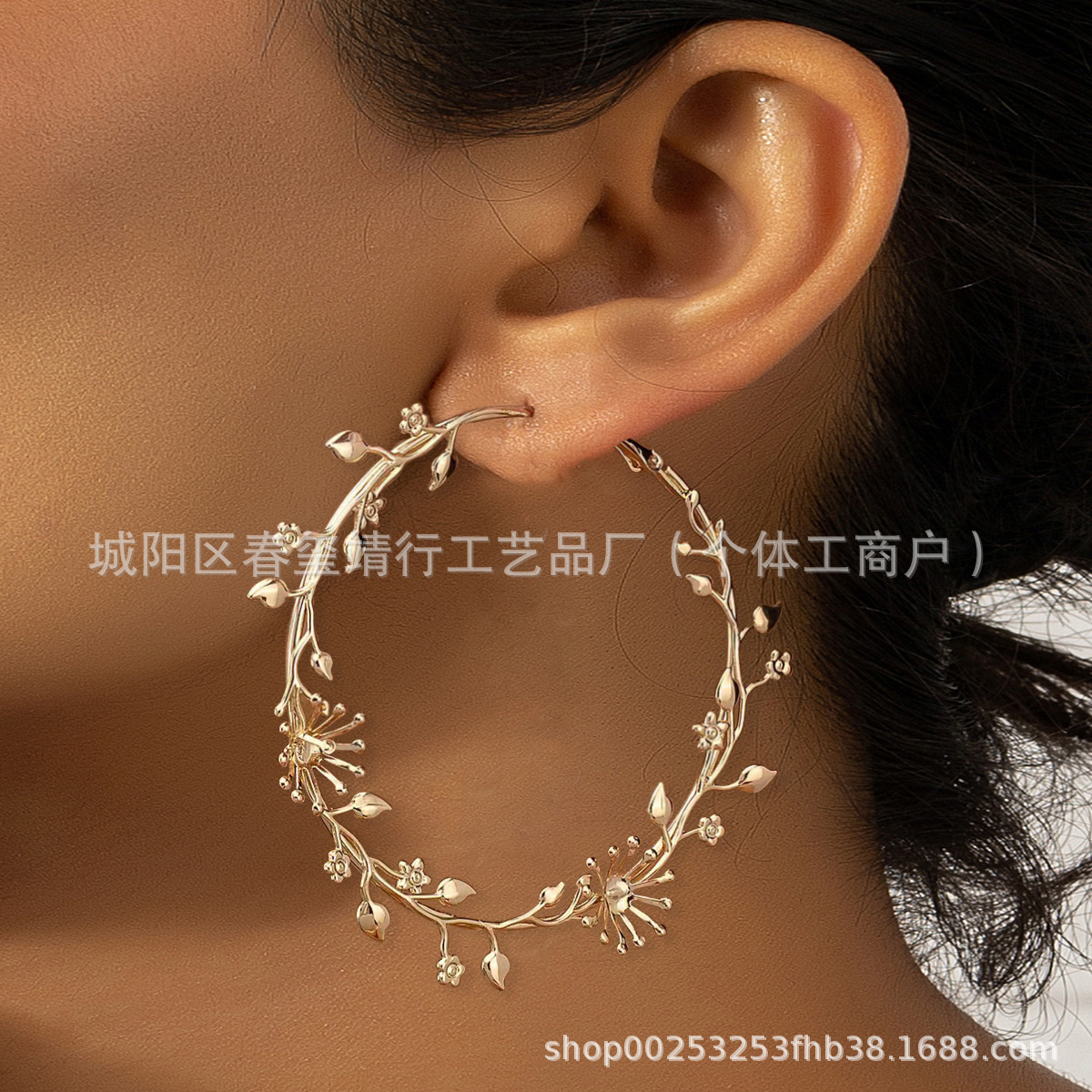 クロスボーダーの新しい甘いスタイルのとげのある籐のバラの花のイヤリング、ハイエンドの金属中空金メッキイヤリング
