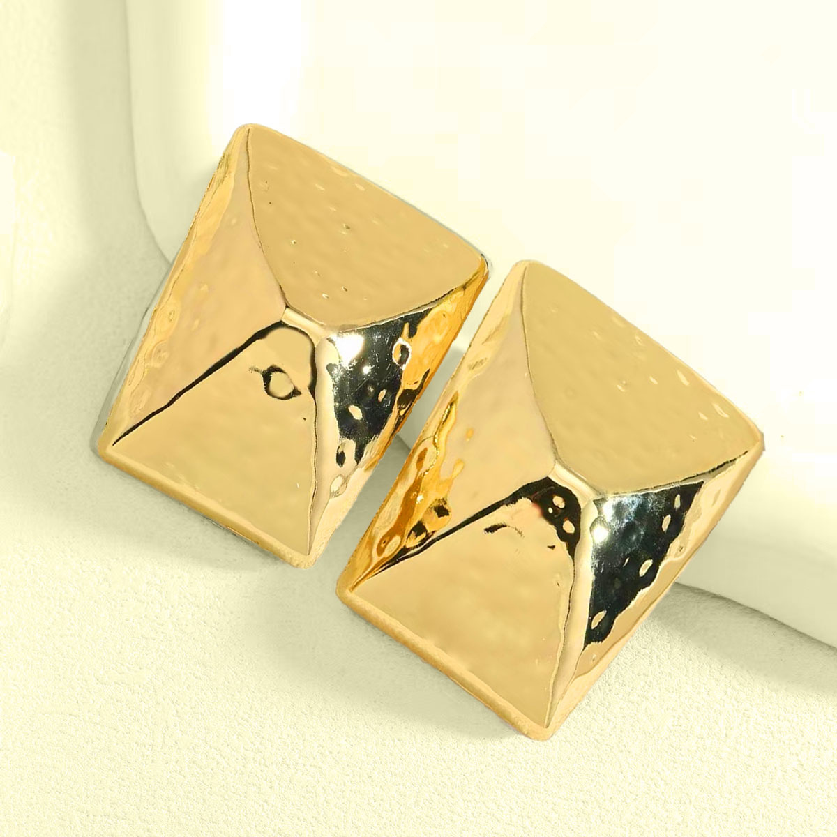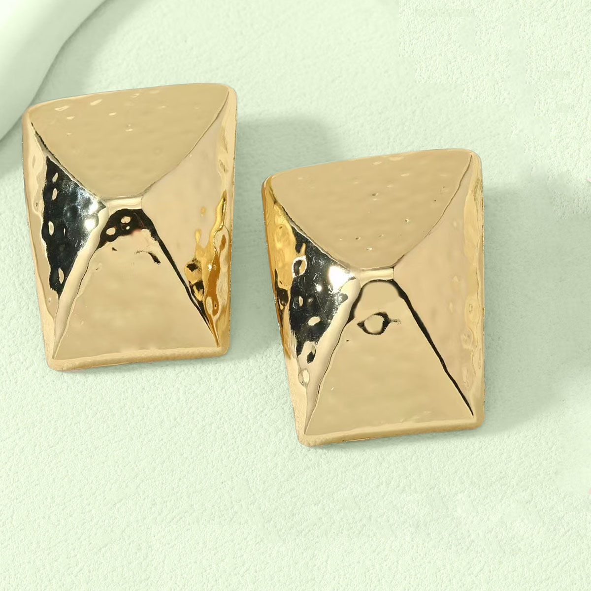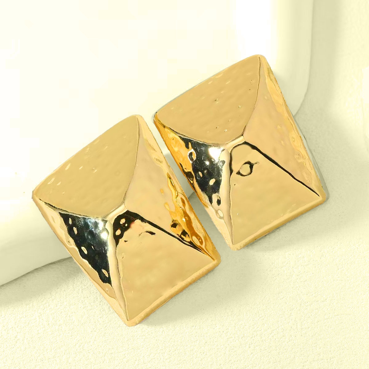 欧米の幾何学の長方形のつや消しのつや消しのイヤリングの女性の中古の金メッキの誇張する幾何学の筋肉の紋様のピアスのイヤリング