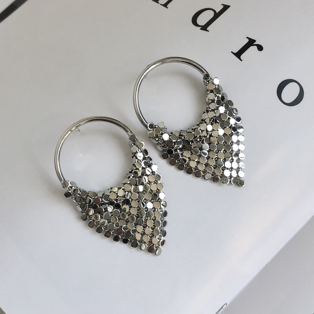 时尚冷淡风金属亮片渔网三角流苏耳环耳圈轻奢高级感大气耳坠耳饰