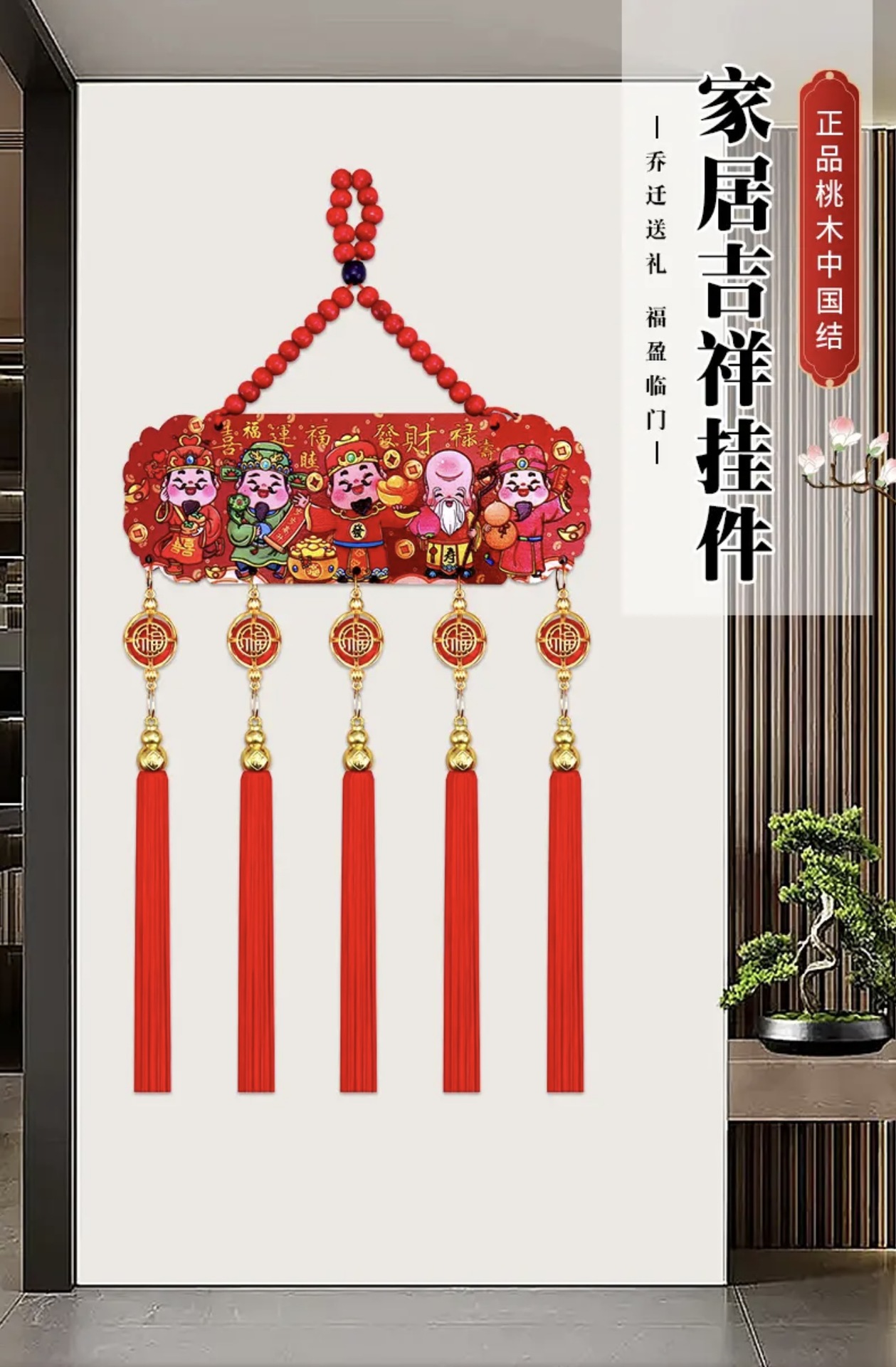 新しい色の彫刻の桃木は戸の扉の5福に入って扉のペンダントの室内に臨みます。