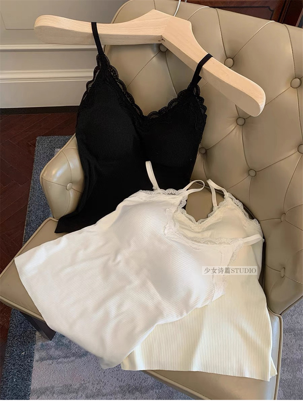 純欲風の中にレースの花の縁に胸のパッドのキャミソールのベストをつけます。