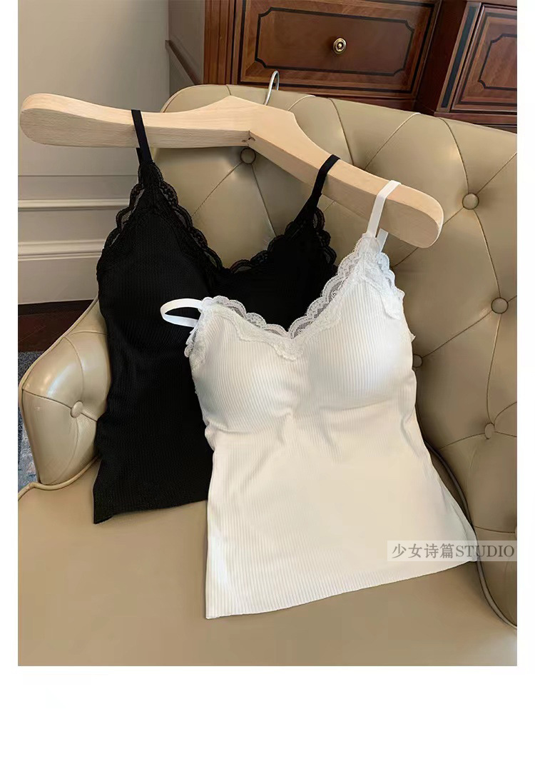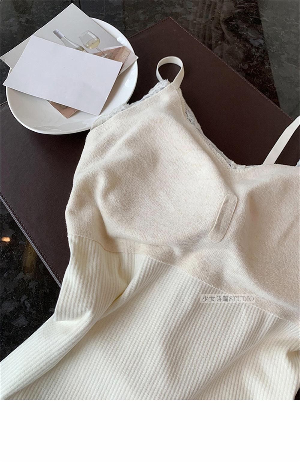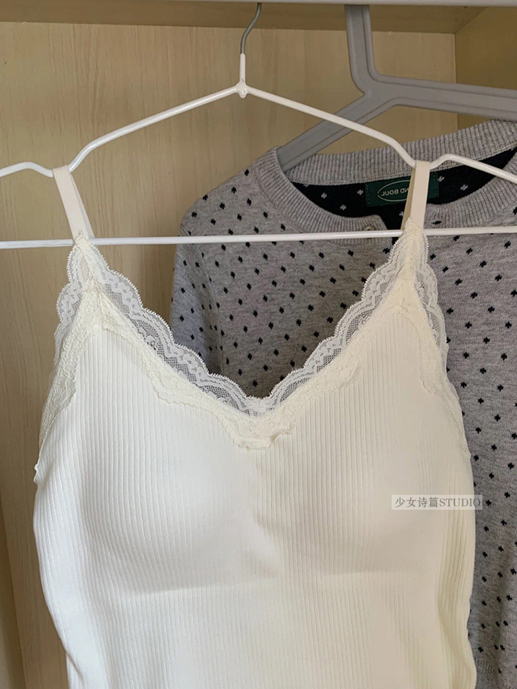 少女感拉满~秋冬款纯欲磨毛吊带背心内搭蕾丝拼接打底保暖上衣女