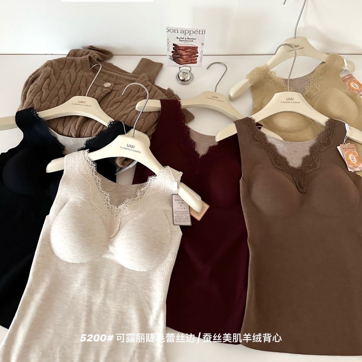可露丽睫毛蕾丝边美肌羊绒背心冬季自发热磨毛加厚带胸垫保暖背心