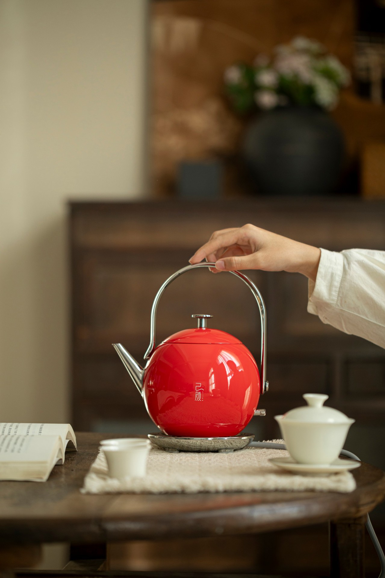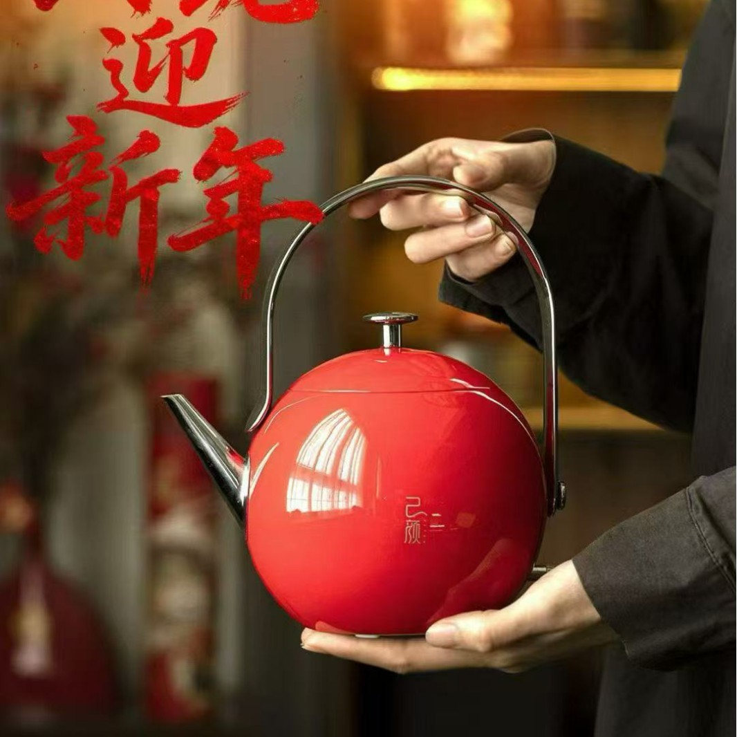 己颜新款红色玲珑烧水壶茶艺专用小型304不锈钢电热水壶随手泡