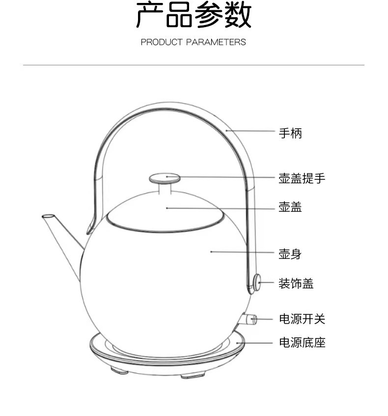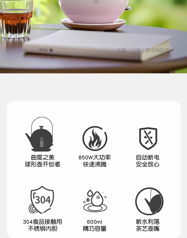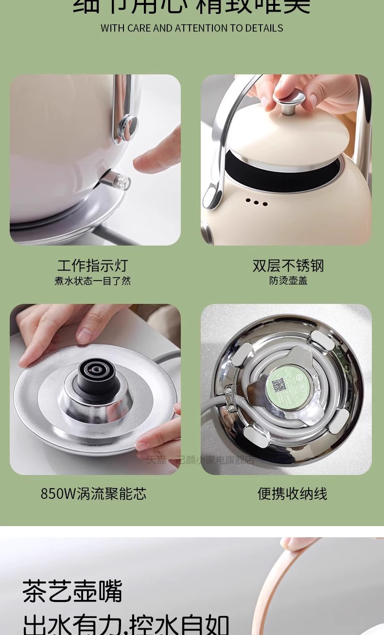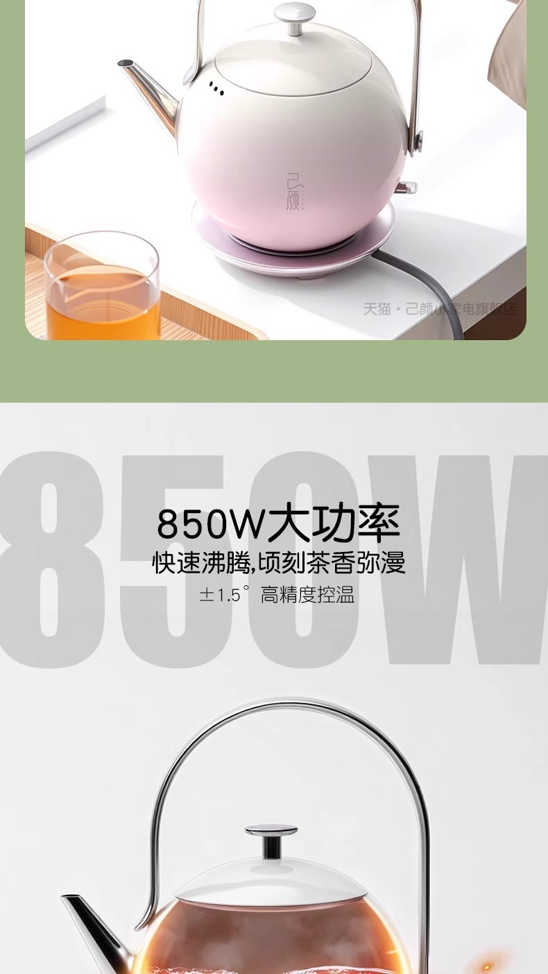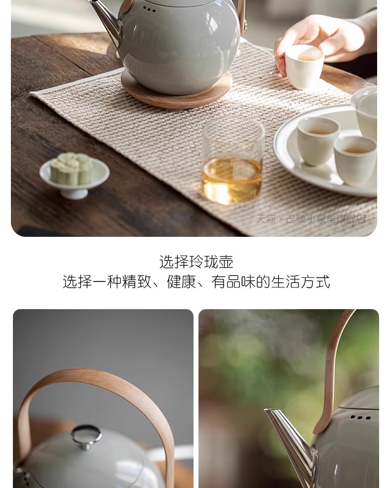 己颜电热水壶304不锈钢泡茶专用小型家用烧水壶高颜值提梁玲珑壶