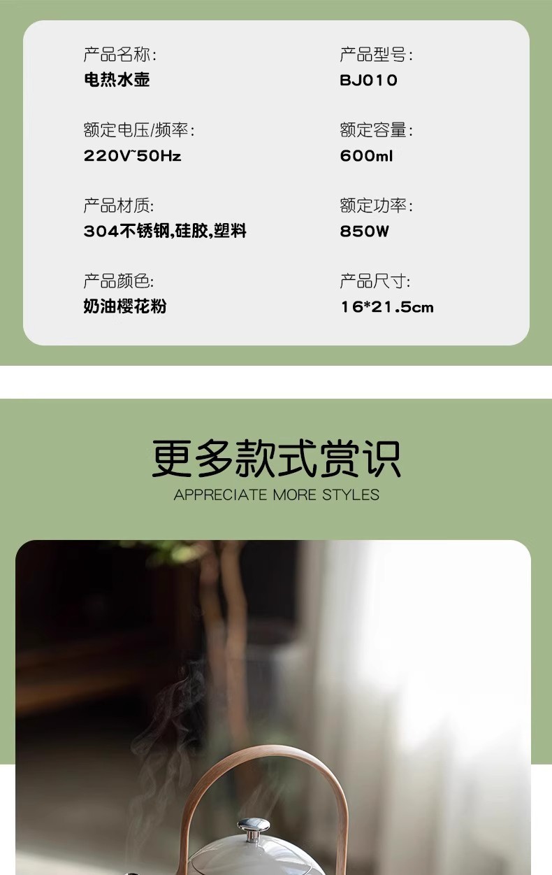 小提新款电热水壶静音家用小型不锈钢一体自动断电泡茶快速烧水壶