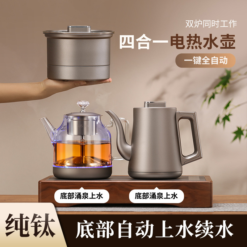 純チタン自動上水湯たんぽ底部上水電湯たんぽ保温一体茶台入茶専用シングルポット