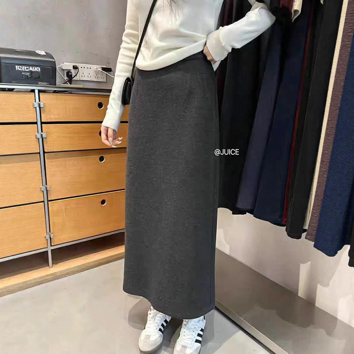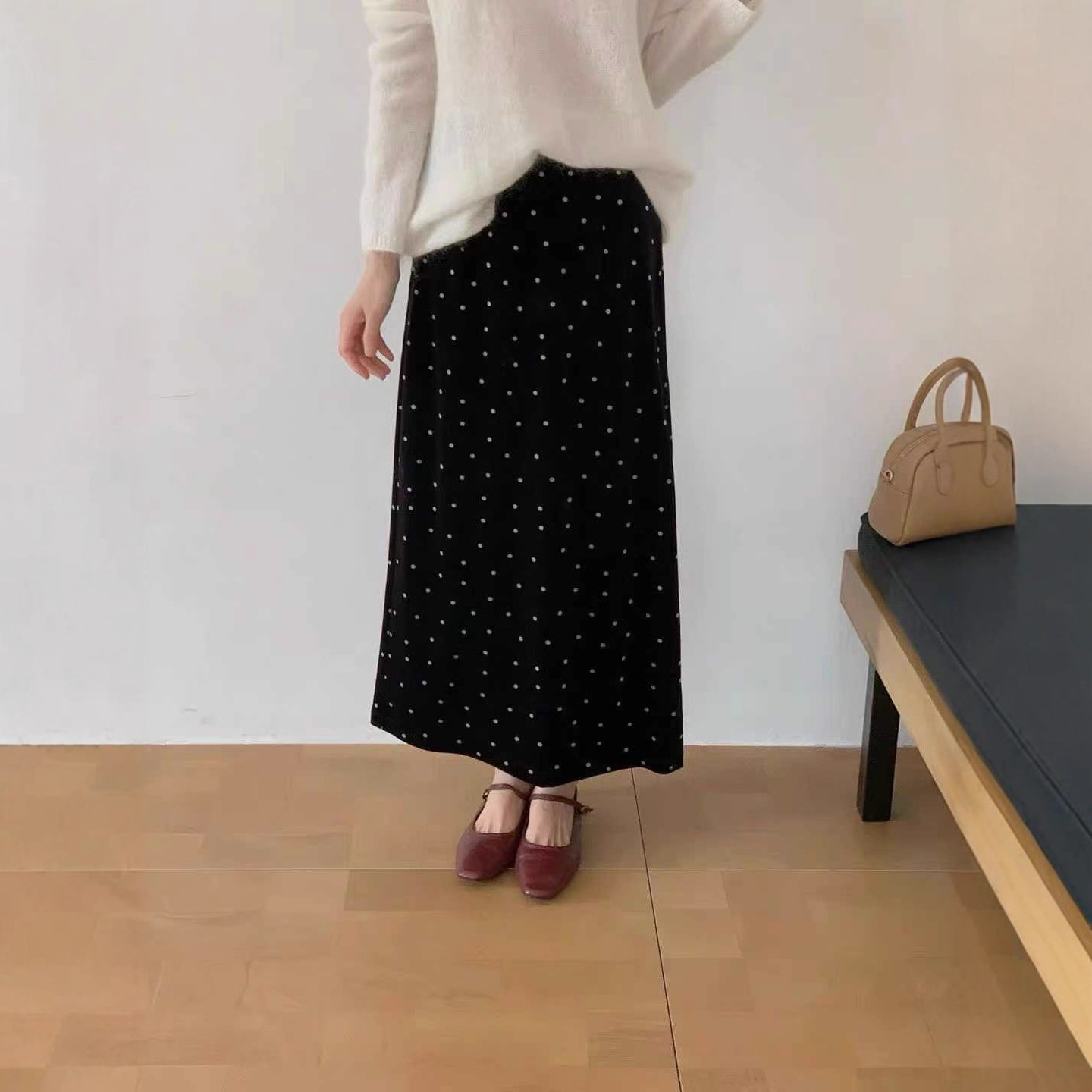 轻奢波点复古俏皮女秋冬针织羊毛宽腰封直筒百搭显瘦中长款半身裙